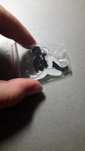 Он прибыл с пятнами белой краски на черном человечке. Кроме того, очень мило.