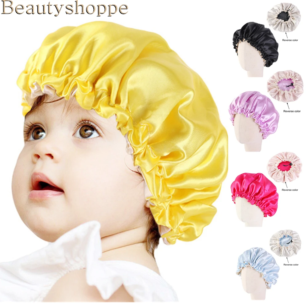 Детская шелковистая двухслойная Атласная шапочка, Регулируемая Шапо...