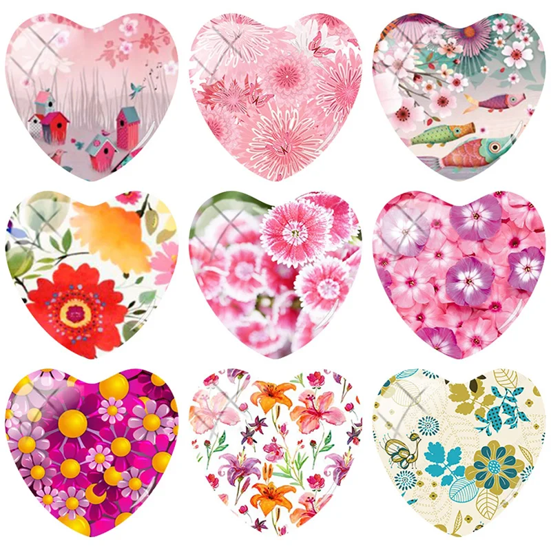 TitleLOVE Handmade Flowers Heart Glass Cabochon