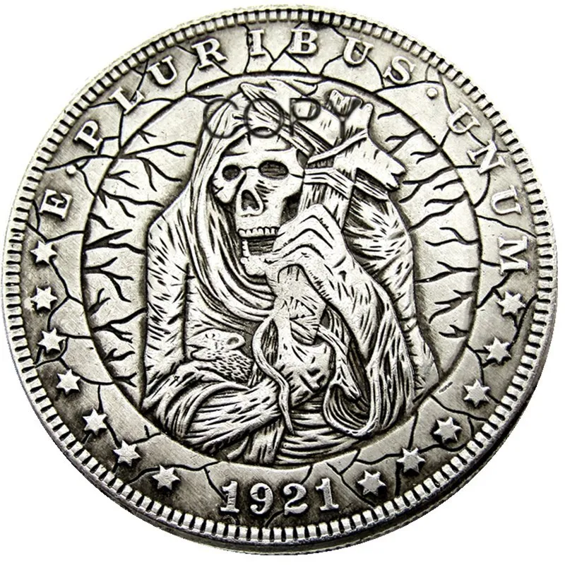 US Hobo 1921 Morgan Dollar Череп Зомби Скелетон посеребренные копии...