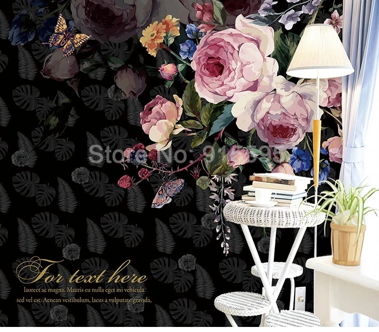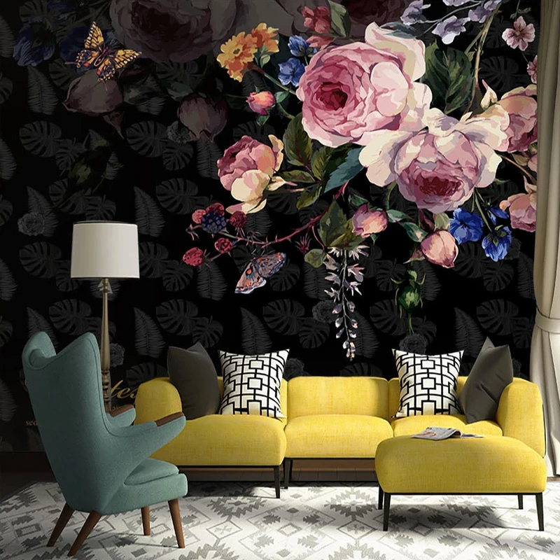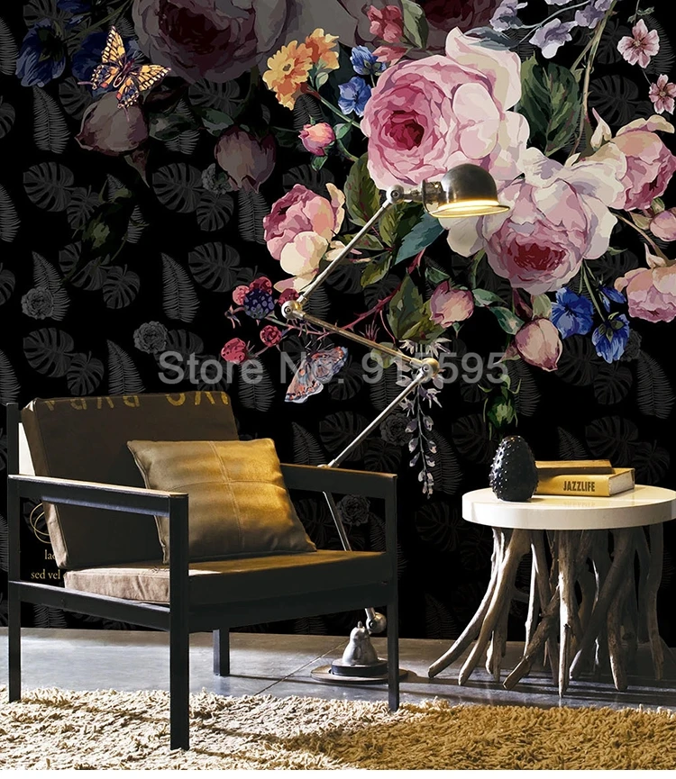 Пользовательские фото большой росписи цветок бабочка масляная живопись обои Европейский стиль ретро Спальня Гостиная наклейки для украшения комнаты стены искусства
