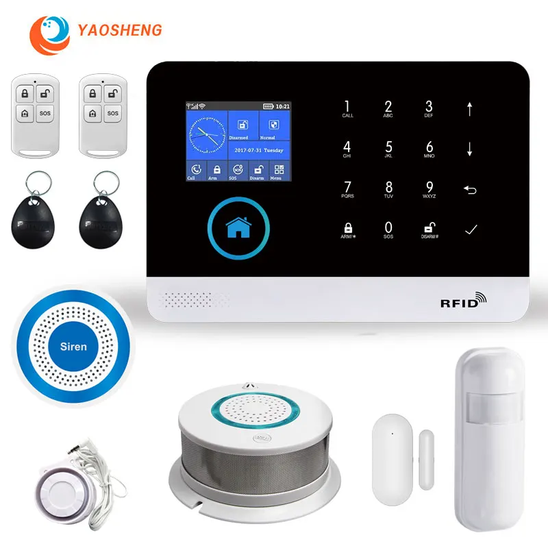 Система сигнализации Wi-Fi TUYA, GSM, с дистанционным управлением через приложение, сирена, детектор дыма, комплект беспроводной охранной сигнализации для умного дома