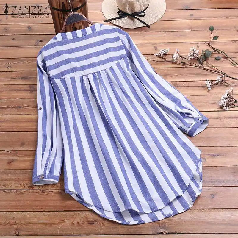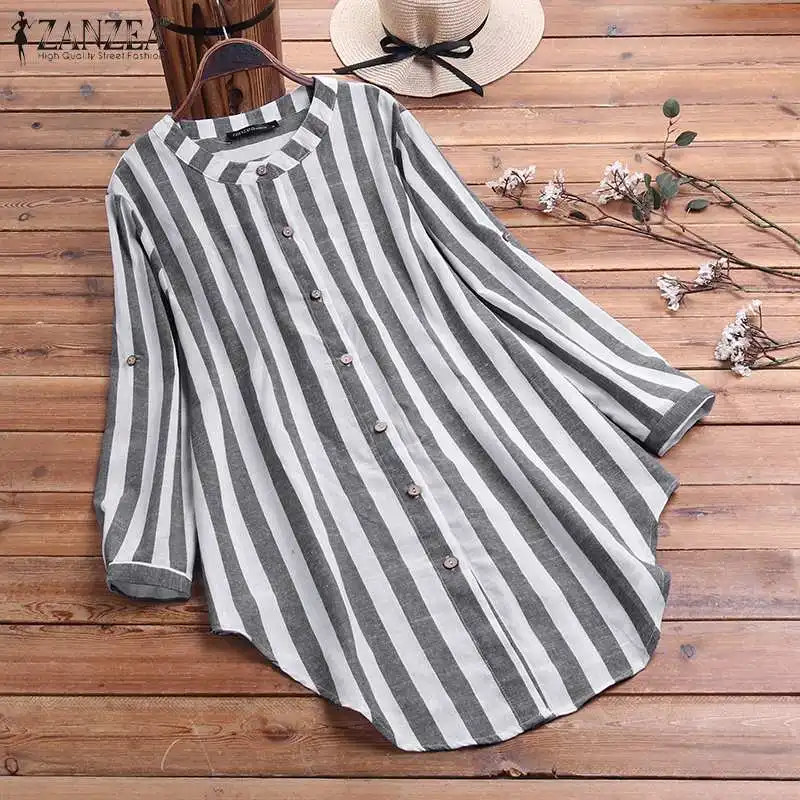 Блузка женская в полоску, на пуговицах, с длинным рукавом, размера оверсайз, весна 2021