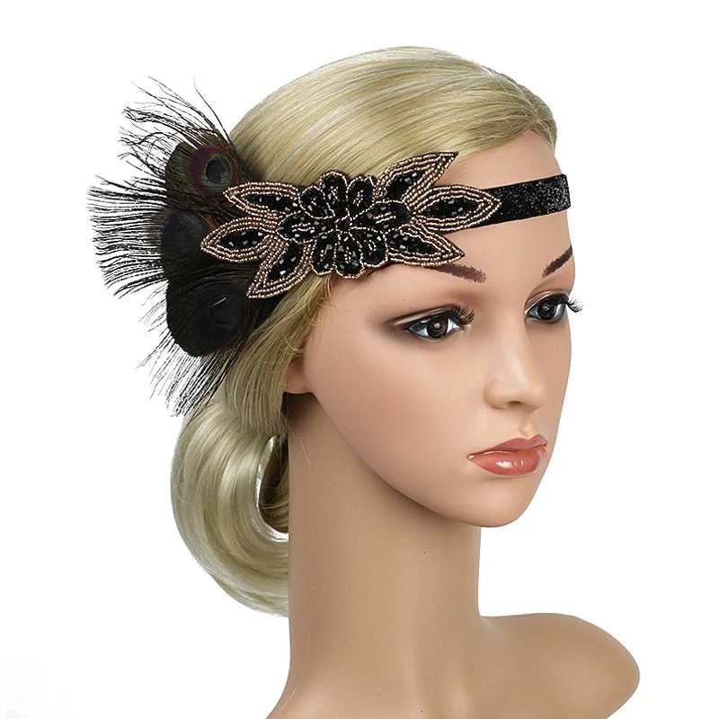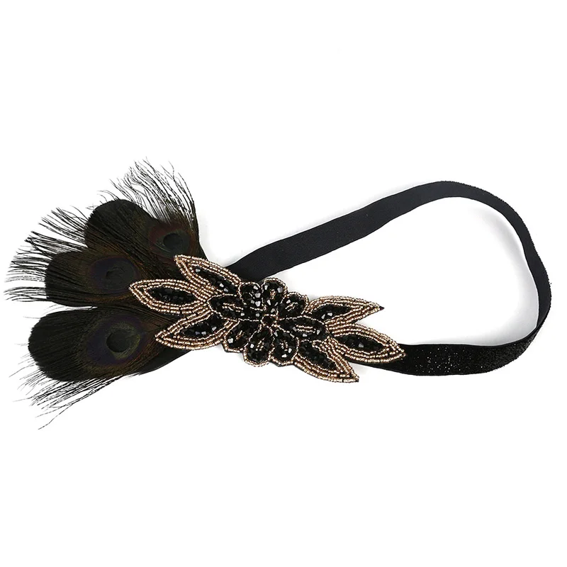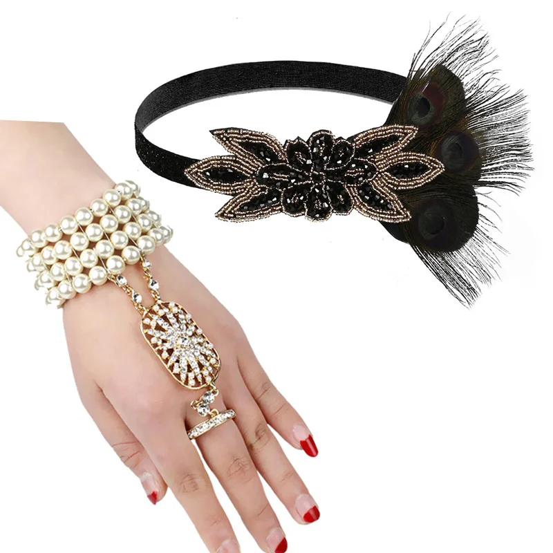 Повязка на голову с перьями и жемчужный браслет, вечерние аксессуары для волос 20s