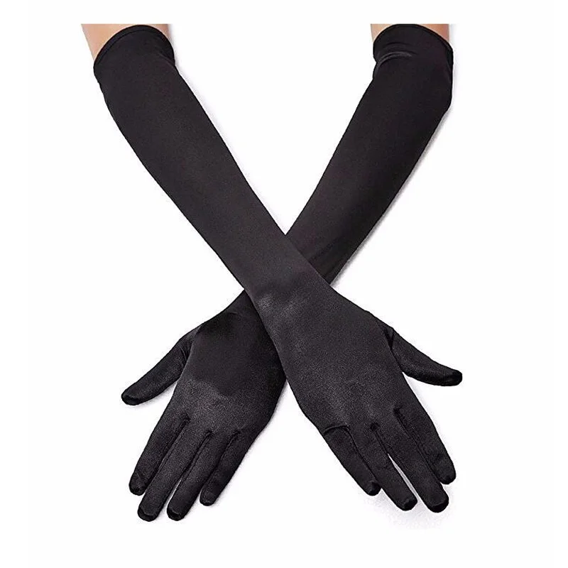 Длина 52 см, классические длинные перчатки черного цвета для взрослыхЭластичная атласная ткань