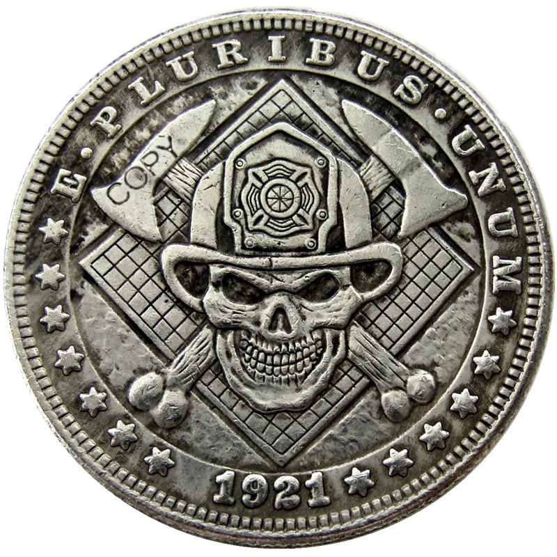 US Hobo 1921 Morgan Dollar Череп Зомби Скелетон посеребренные копии...