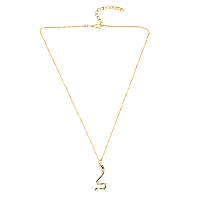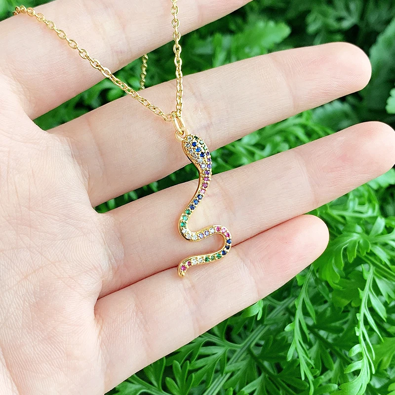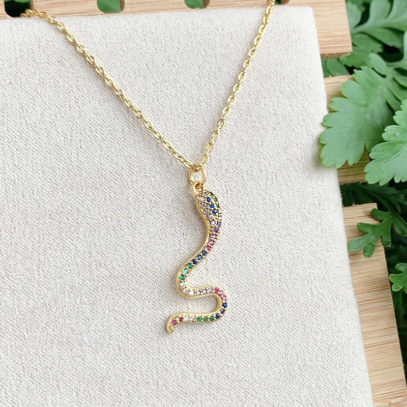 Цепочка на шею KOMi K2313, с инкрустированным фианитом ожерелье с медальоном в виде змеи, в виде змеи