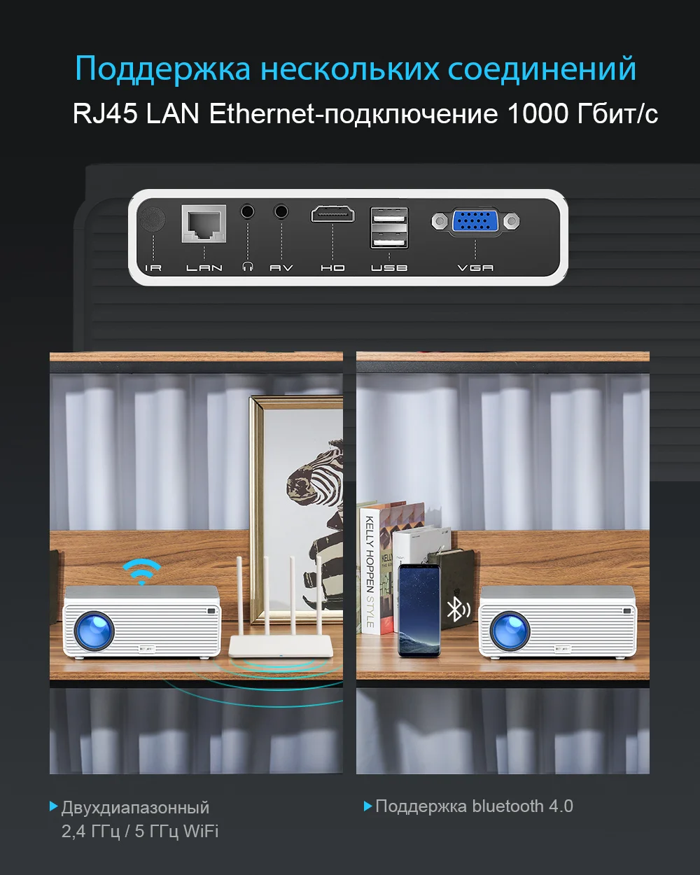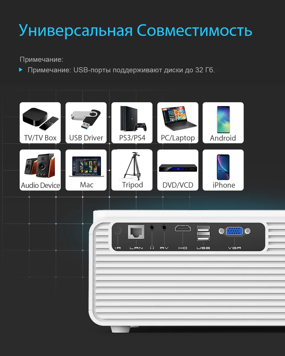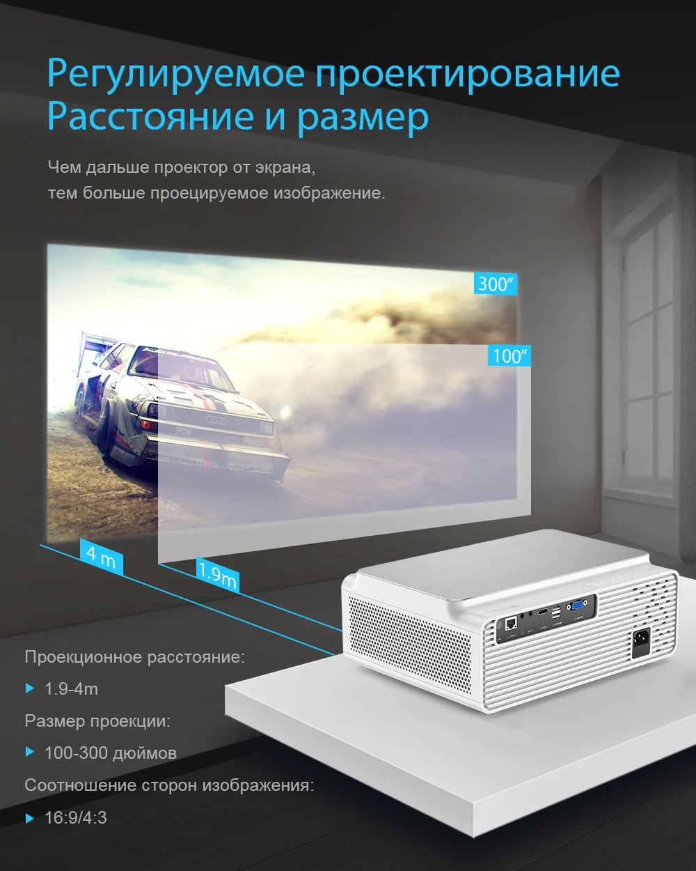 ЖК-проектор Blitzwolf BW-VP3, 380 ANSI 6500 люмен Android 8,0 16 Гб bluetooth, 4K разрешение, Система домашнего кинотеатра