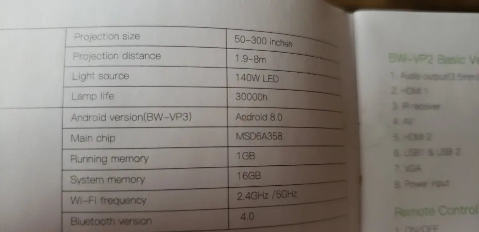 Проектор: отличное качество изображения и звука. На фото появились небольшие темные пятна (почти незаметные, видимые только на очень четких изображениях), но через 2 недели это пятно исчезло. Android: советуем купить bw-vp2 версию без Android. Android, который поставляется на устройстве, имеет свои корни. Очень мало приложений работают на проекторе. Federal: оплатил мне более 900 долларов, даже после того, как я запросил обзор налогов. На дисплее обратите внимание, что внешняя упаковка показывает нам $72 и все еще, Рецепт имеет стоимость US $300 и рассчитать налог на эту сумму. На самом деле правильное значение было чем-то вокруг нас $200. Поверьте, отправка с более низкой стоимостью в примечании, чтобы налог не был таким высоким.