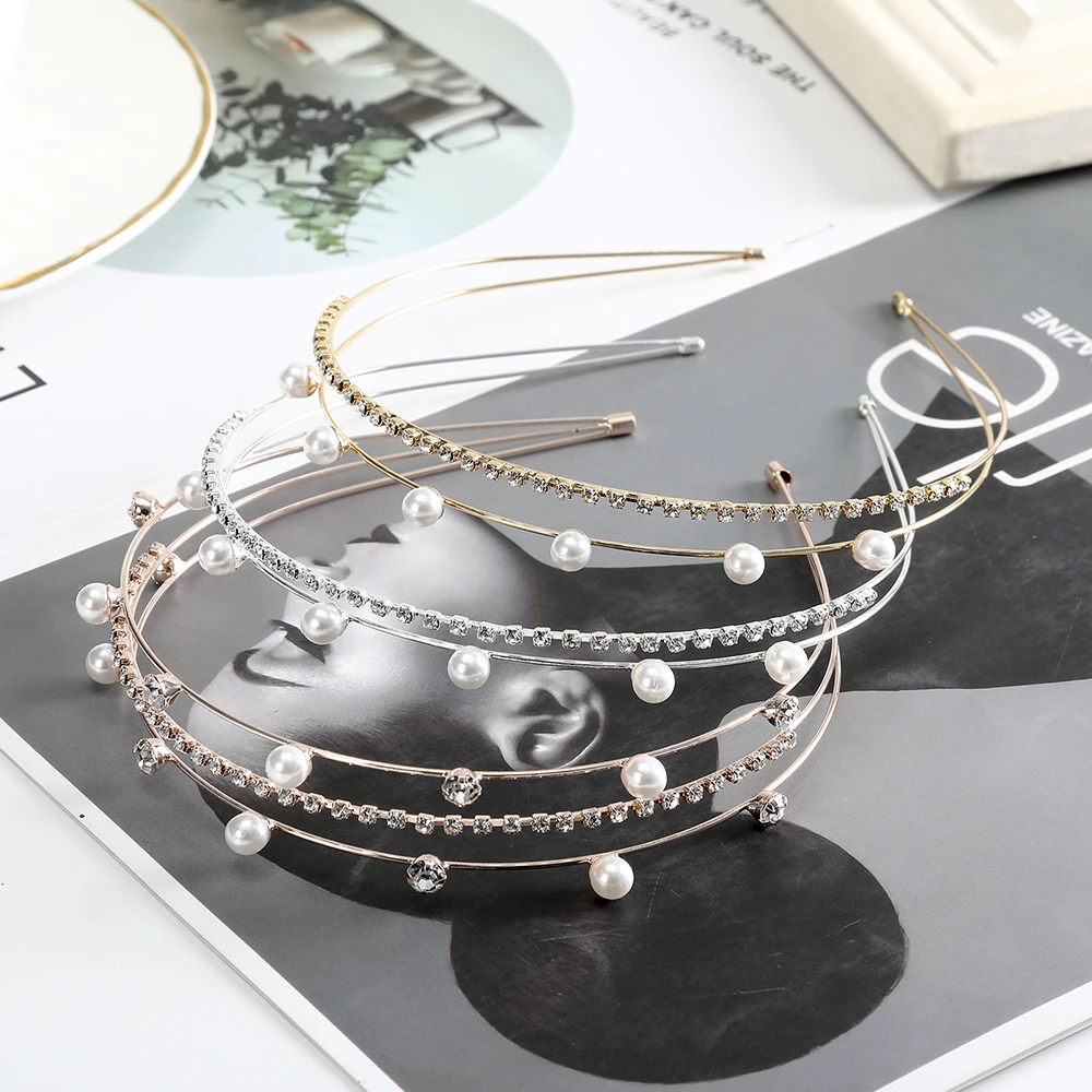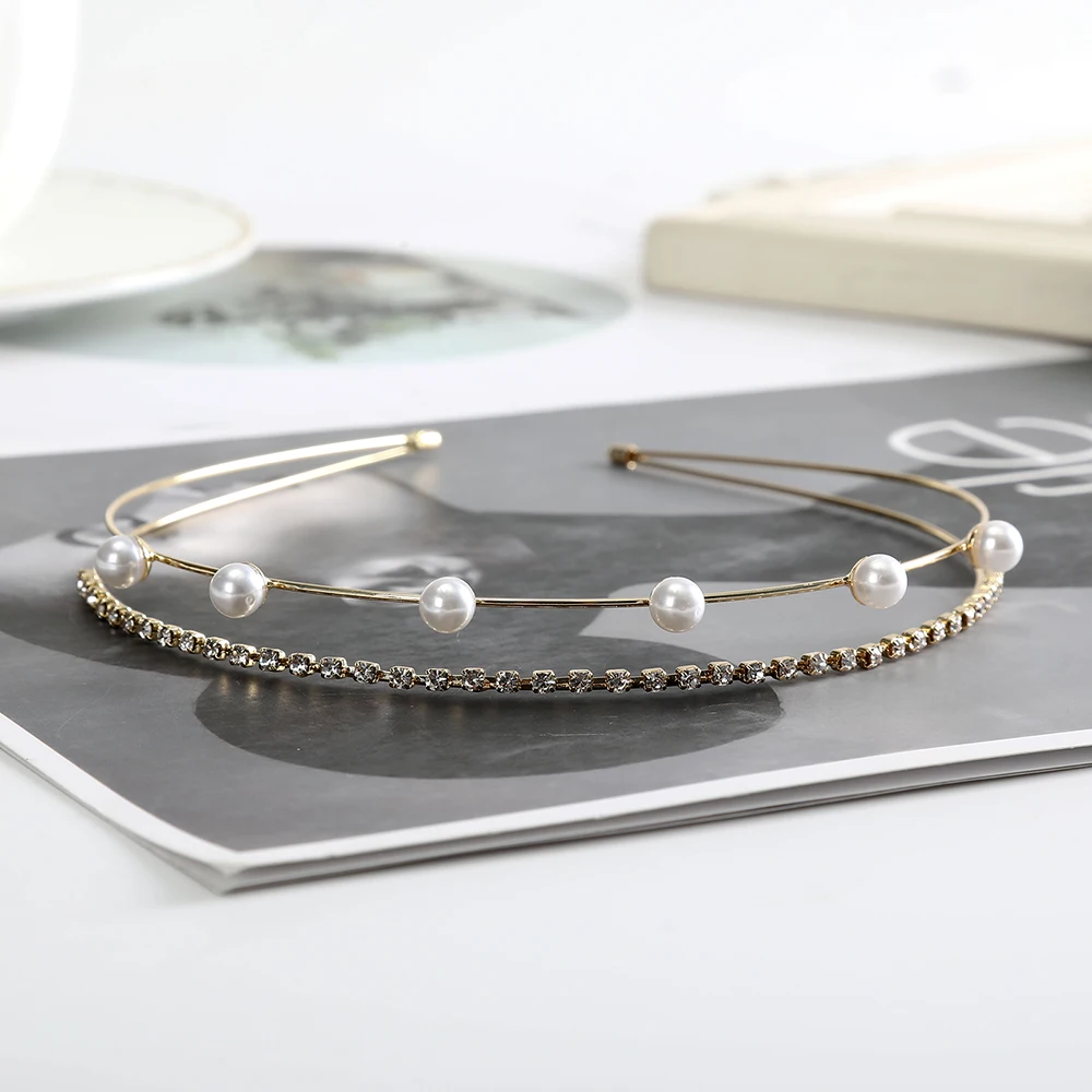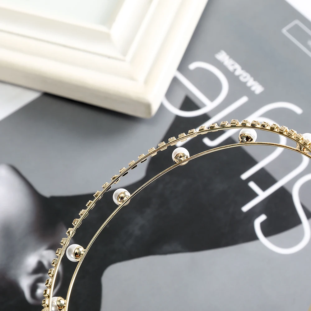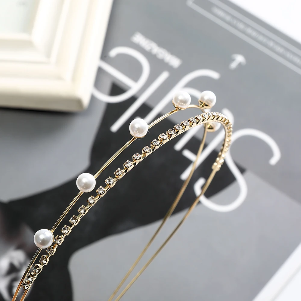 Ободок для волос с жемчугом Женский, тонкий двухслойный металлический обруч с жемчугом и кристаллами, модный аксессуар для волос