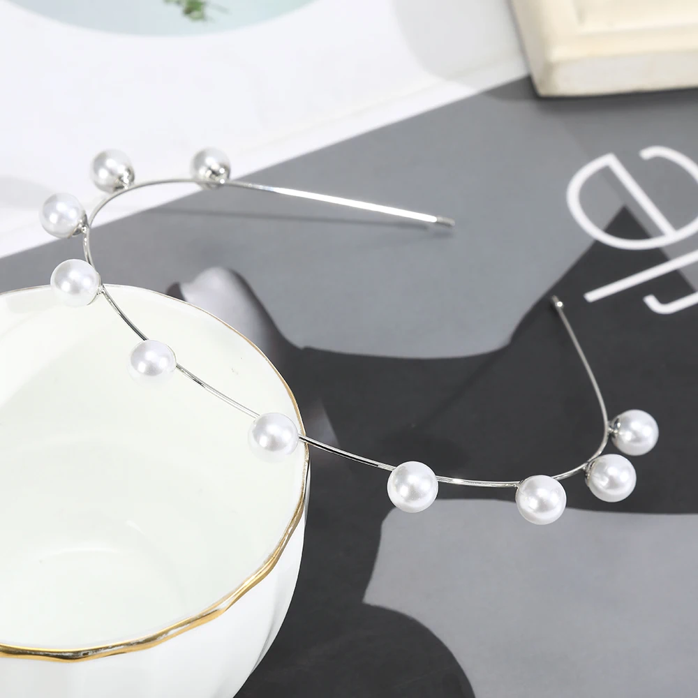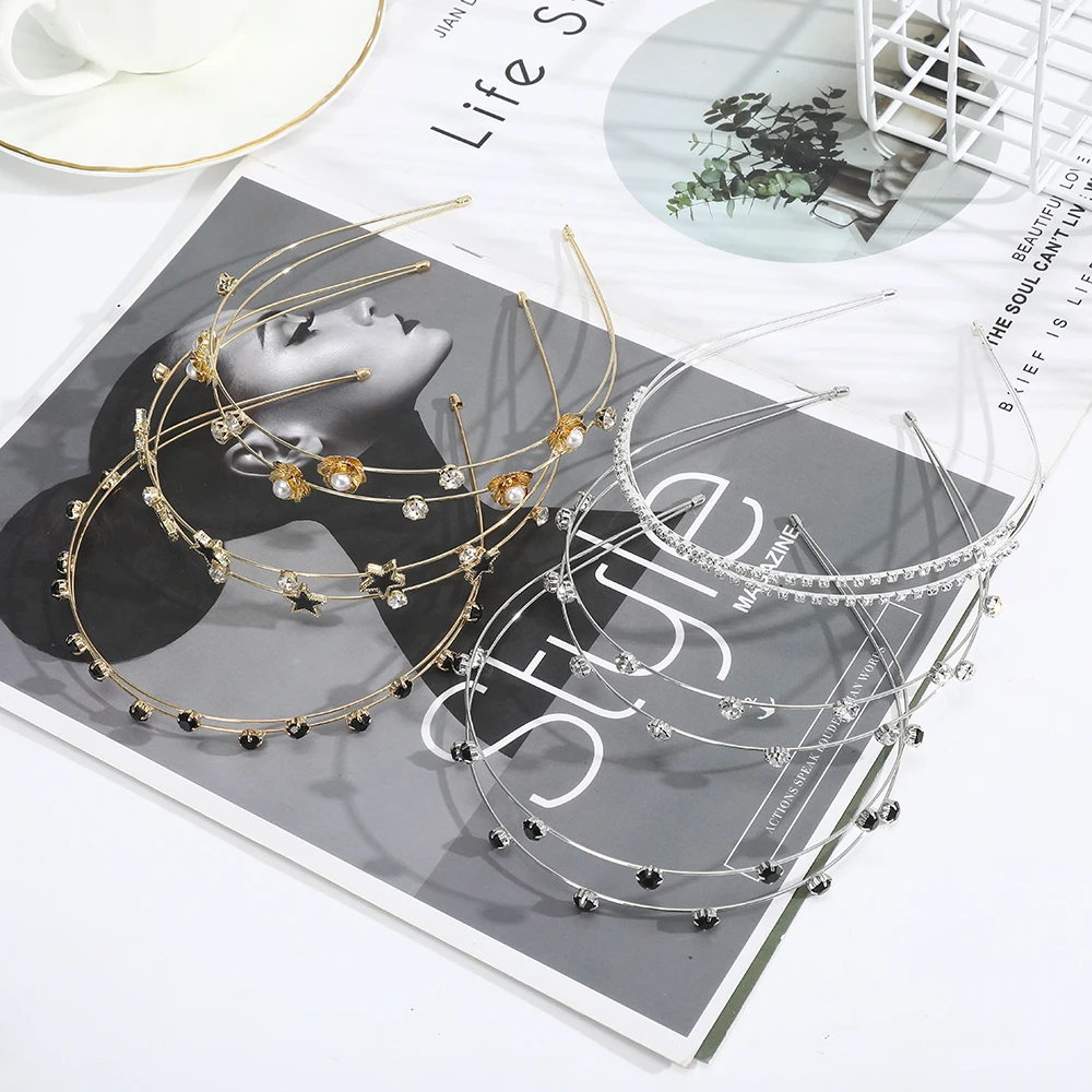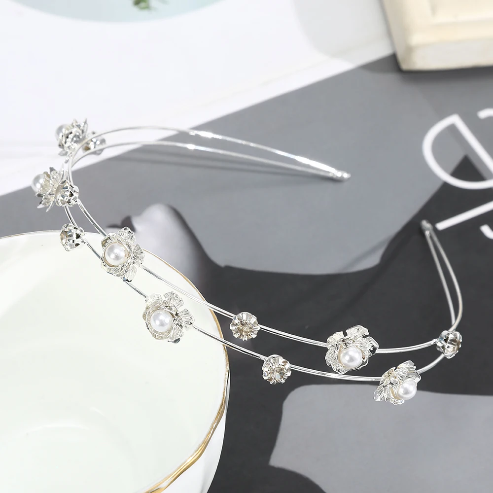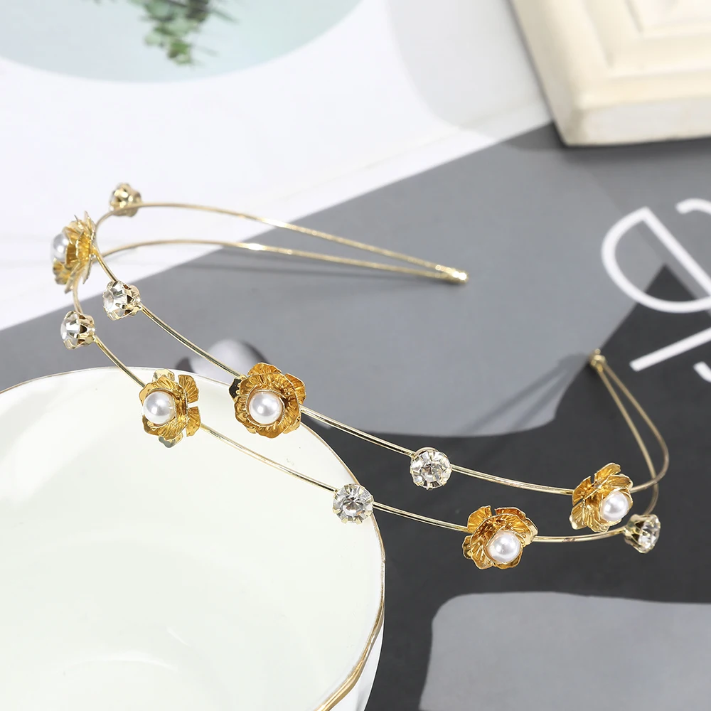 Ободок для волос с жемчугом Женский, тонкий двухслойный металлический обруч с жемчугом и кристаллами, модный аксессуар для волос