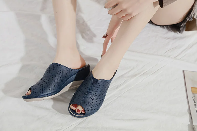 2021 летние туфли женские римские сандалии повседневные женские босоножки на танкетке мягкая обувь модные брендовые женские туфли на танкетке 5 см, большой размер A2116