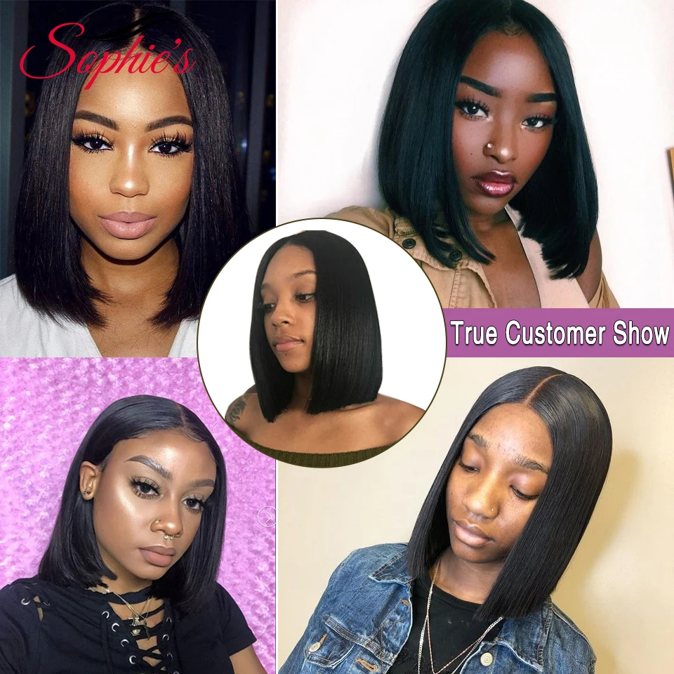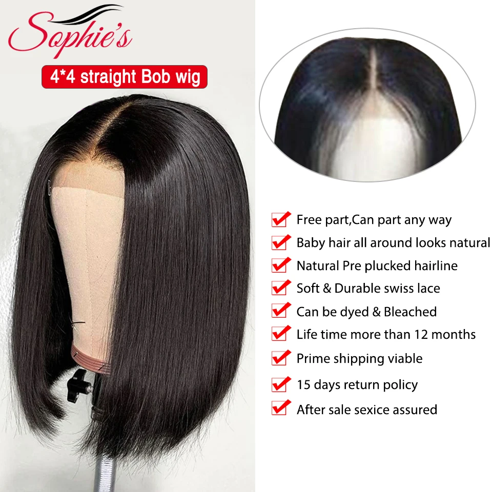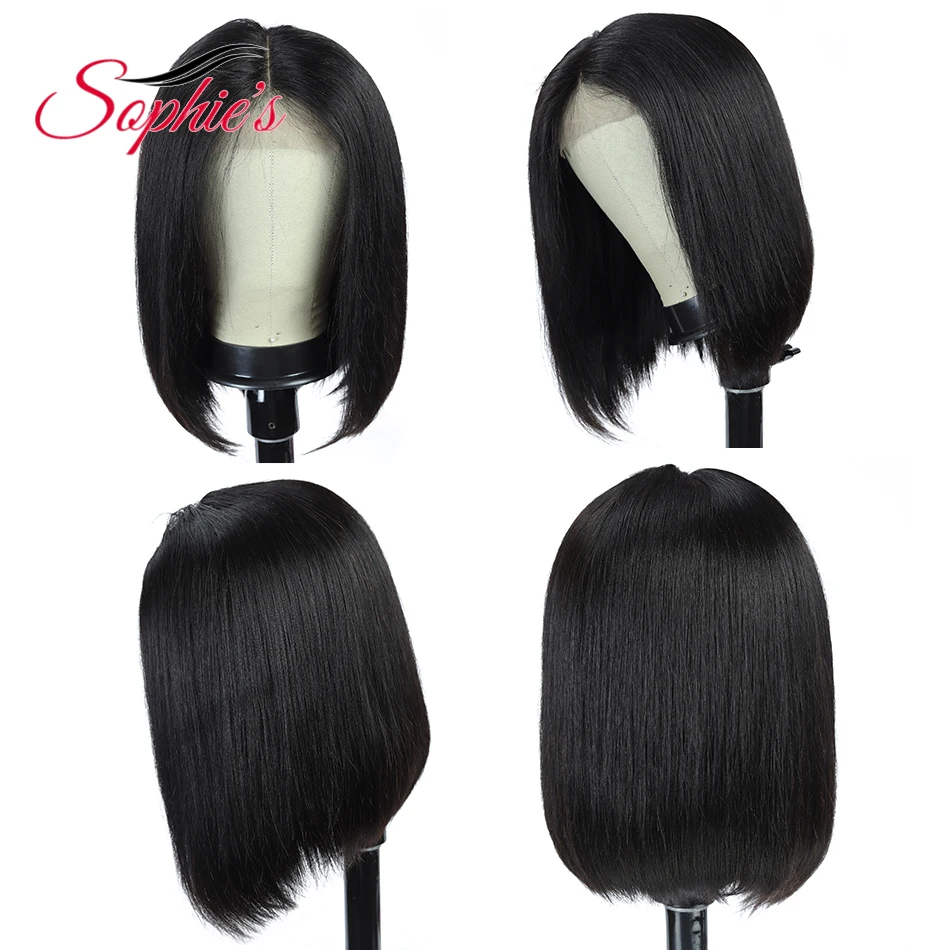 Парики Софи из натуральных волос, короткие, с сеткой, 4*4, с предварительно выщипанными бразильскими прямыми волосами, плотность 180%, парик Реми 8-14 дюймов