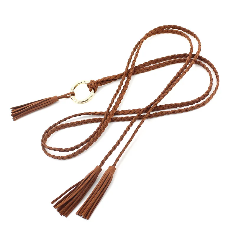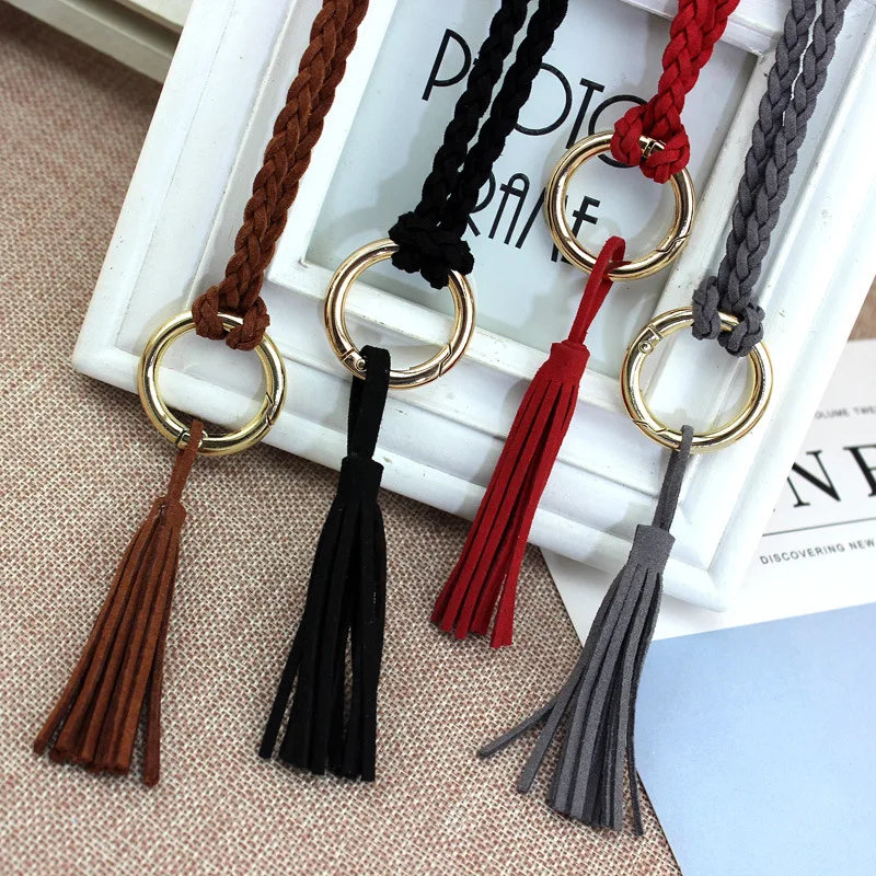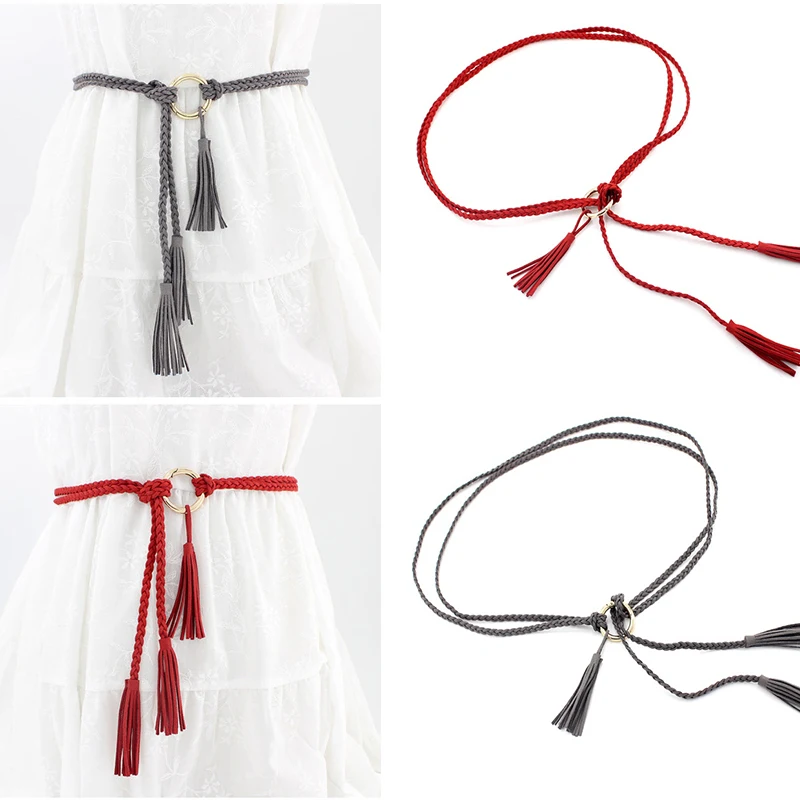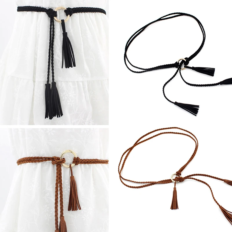 Женский плетеный ремень AWAYTR, однотонный ремень в романтическом стиле с металлической пряжкой и кисточками, аксессуар для платья