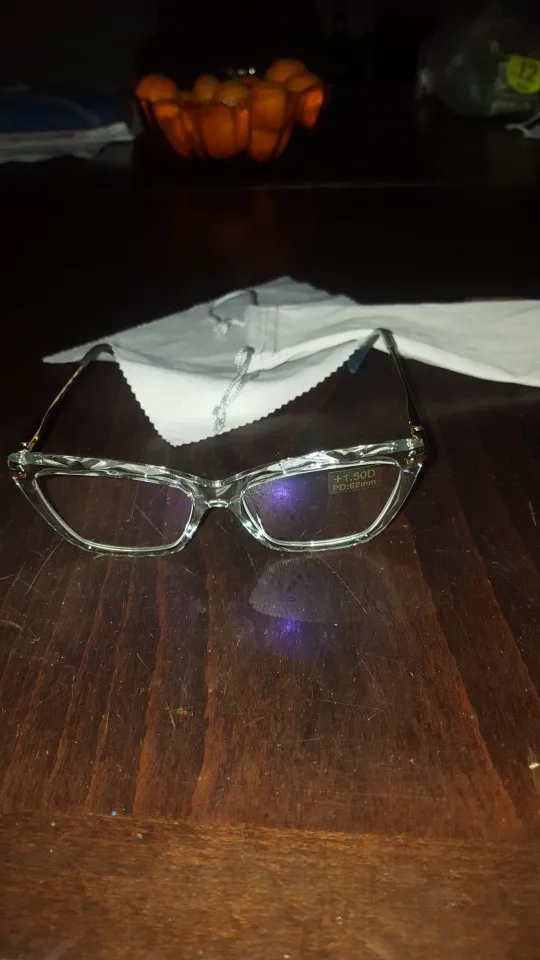Очки очень эффектные, кто любит такой стиль, рекомендую. Качественные, цена соответствует, заказывала +3, один в один, единственное-немного тяжеловытые, но это за счёт стёкол, они толстые, походила 3 часа тяжело на переносице, а вообще очень крутые-я довольна!