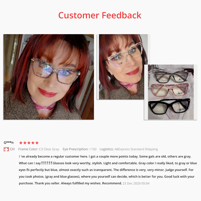 Страна: CA Frame Color: C3 Clear Gray Eye Prescription: +225 Доставка: China Post Registered Air Mail 04.12.2020