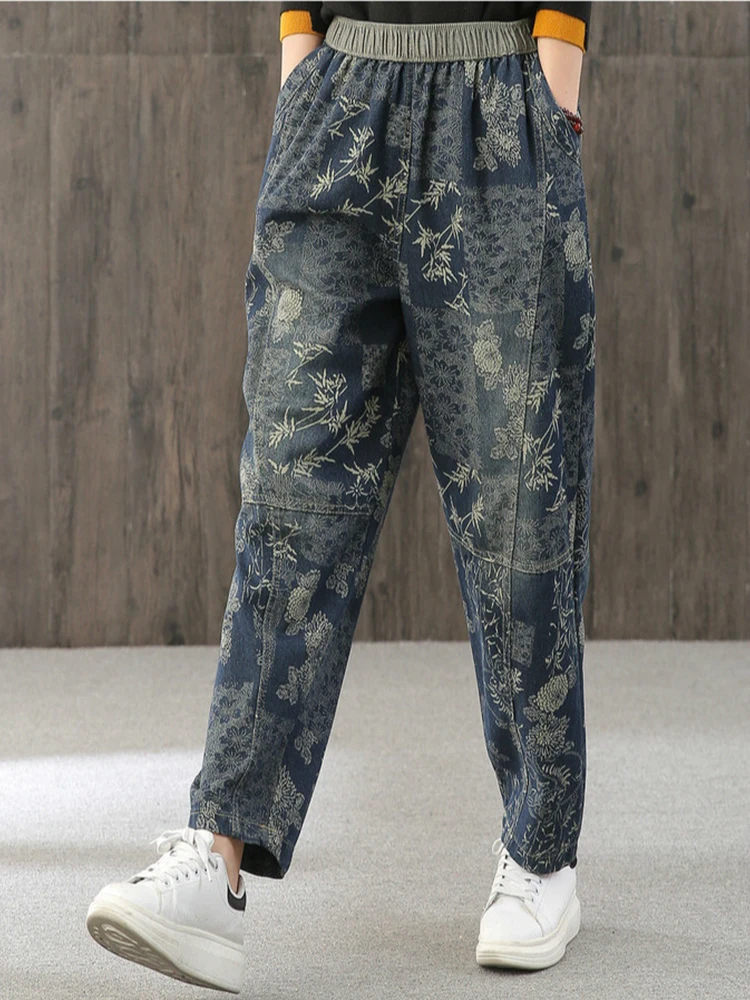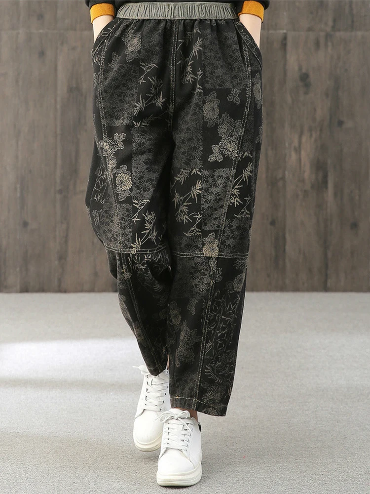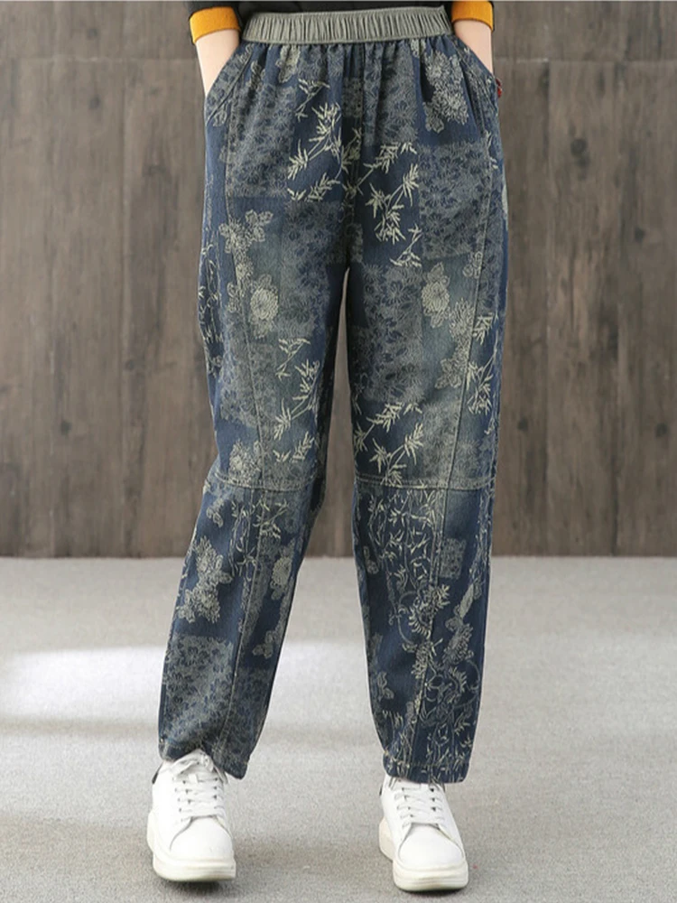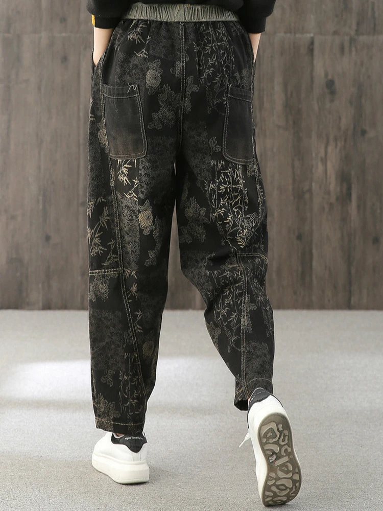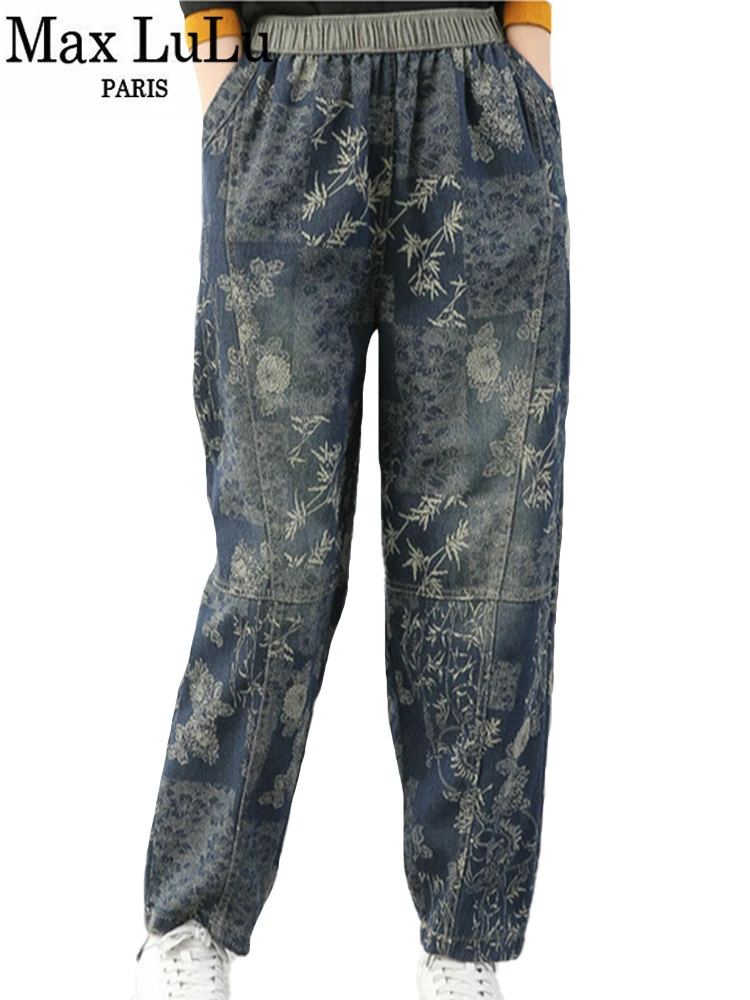 Женские свободные джинсы Max LuLu, модные корейские повседневные брюки из денима с цветочным принтом, винтажные шаровары большого размера для весны, 2022