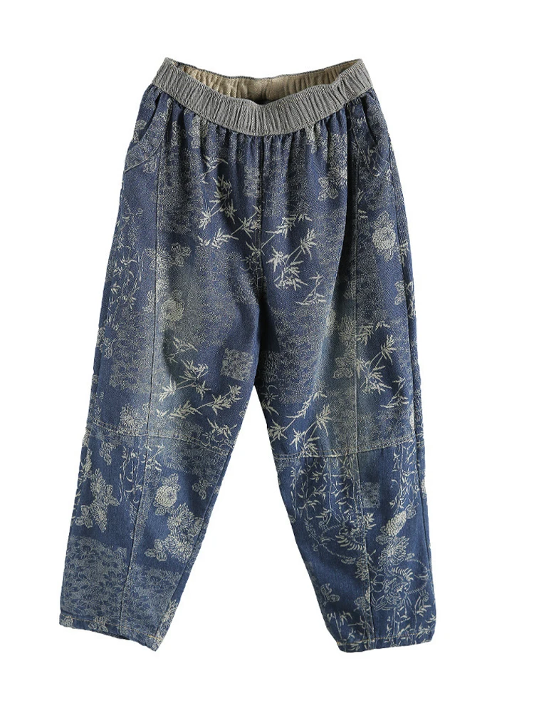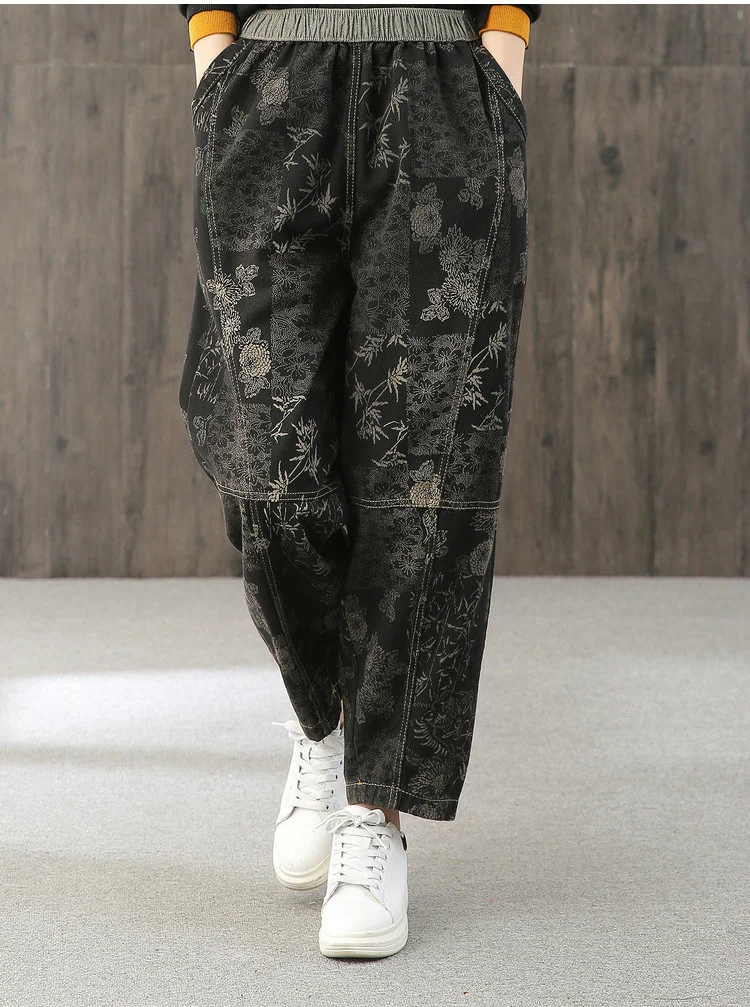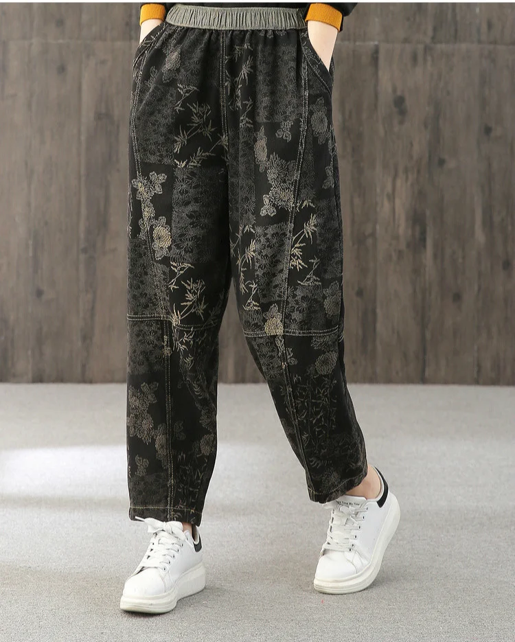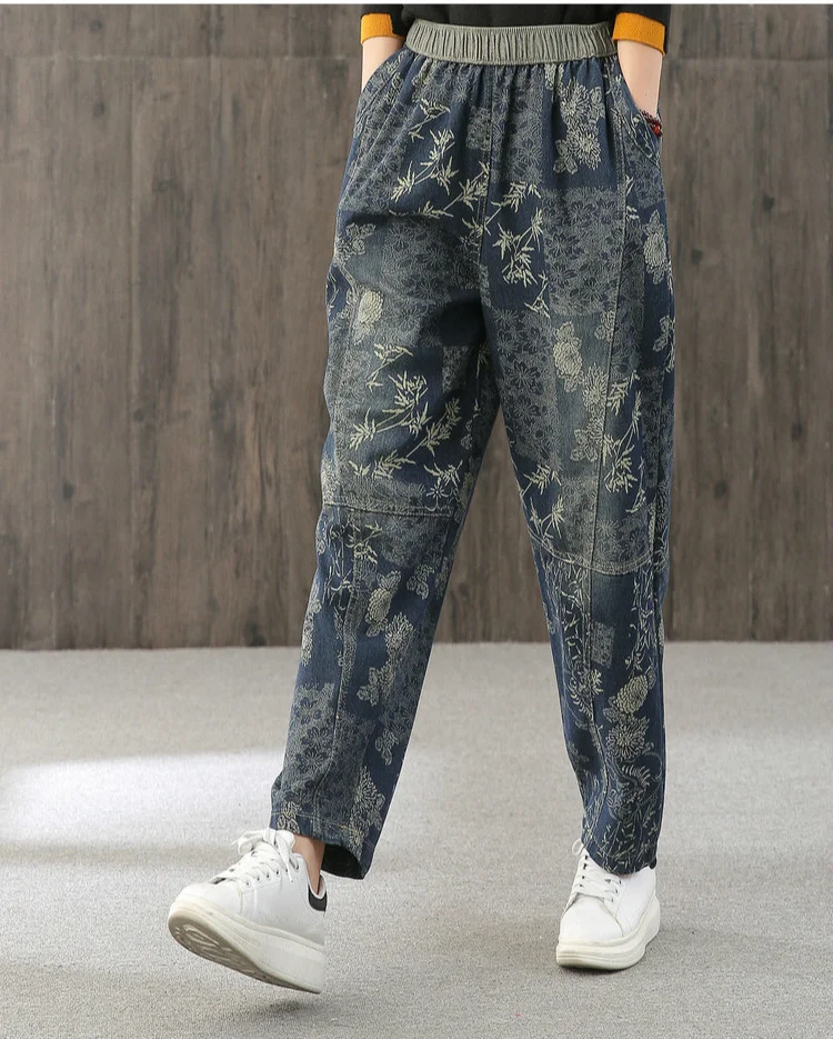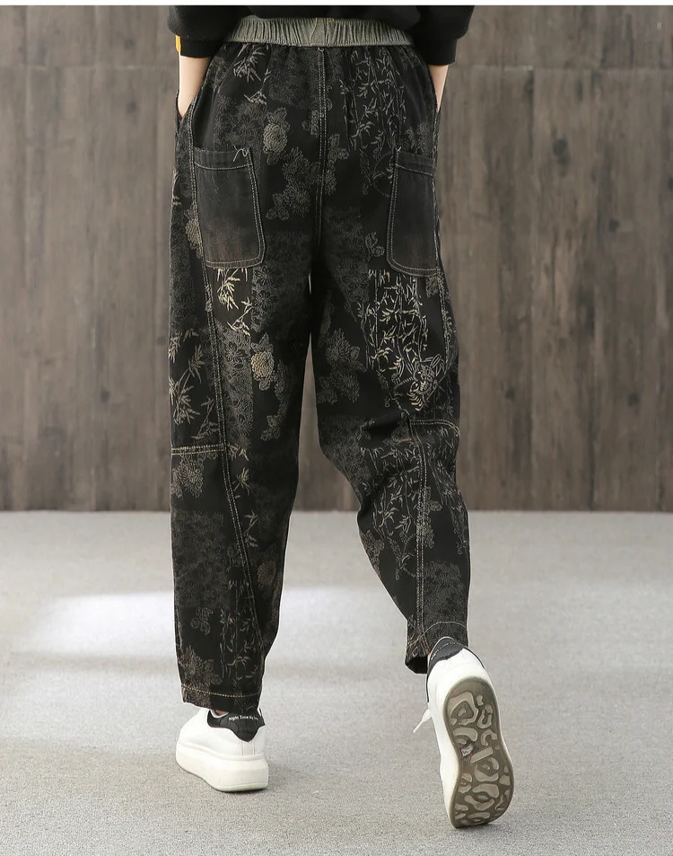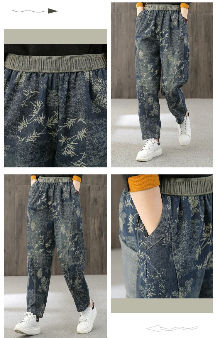 Женские свободные джинсы Max LuLu, модные корейские повседневные брюки из денима с цветочным принтом, винтажные шаровары большого размера для весны, 2022
