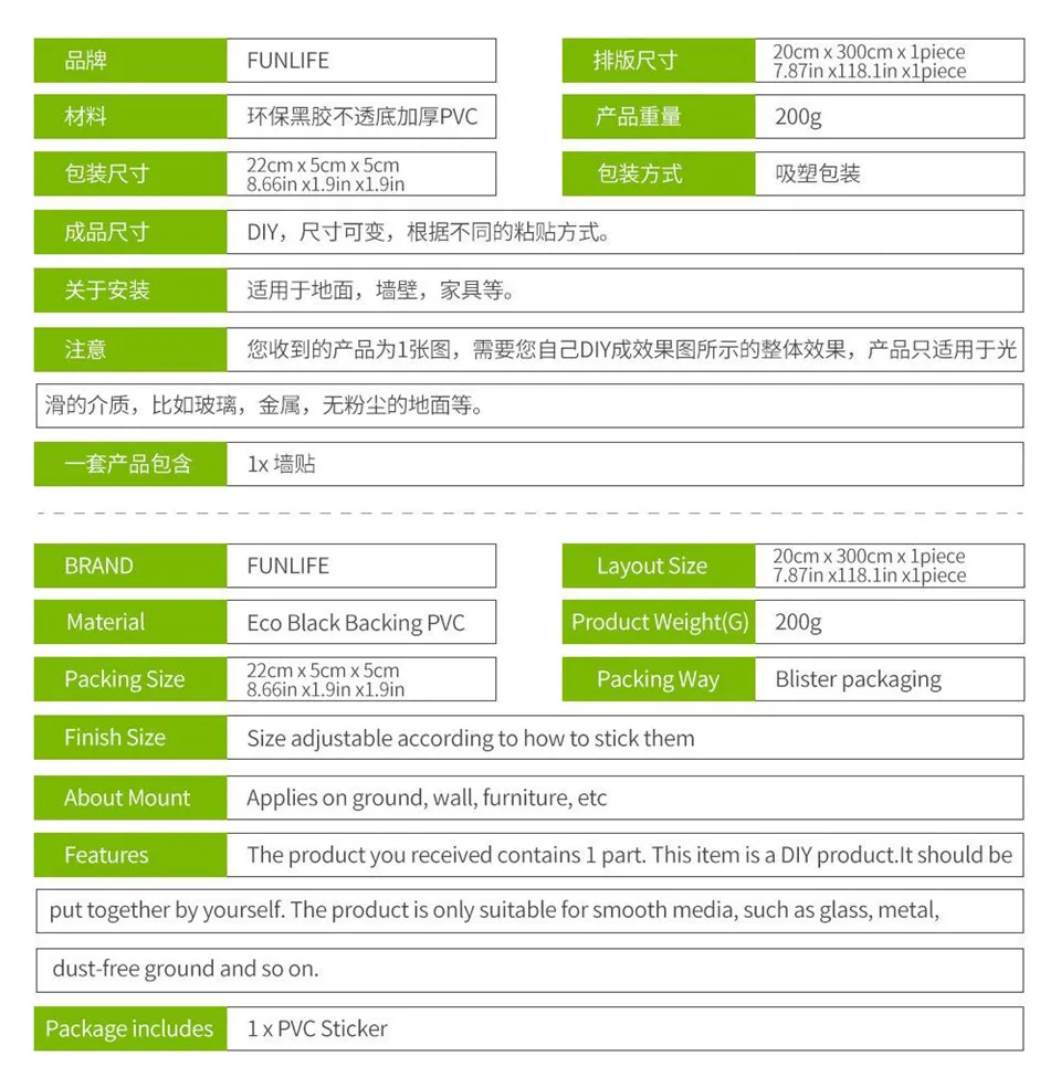 Размер: 20x300смМатериал: Эко черная Подложка ПВХО креплении: применяется на земле, стене, мебели и т. д.Характеристики: продукт, который вы получили, содержит 1 часть, это изделие сделай сам, его следует собрать вместе самостоятельно, продукт подходит только для гладких сред, таких как стекло, металл, защита от пыли и т. д.Посылка: наклейка ПВХ-1 шт.