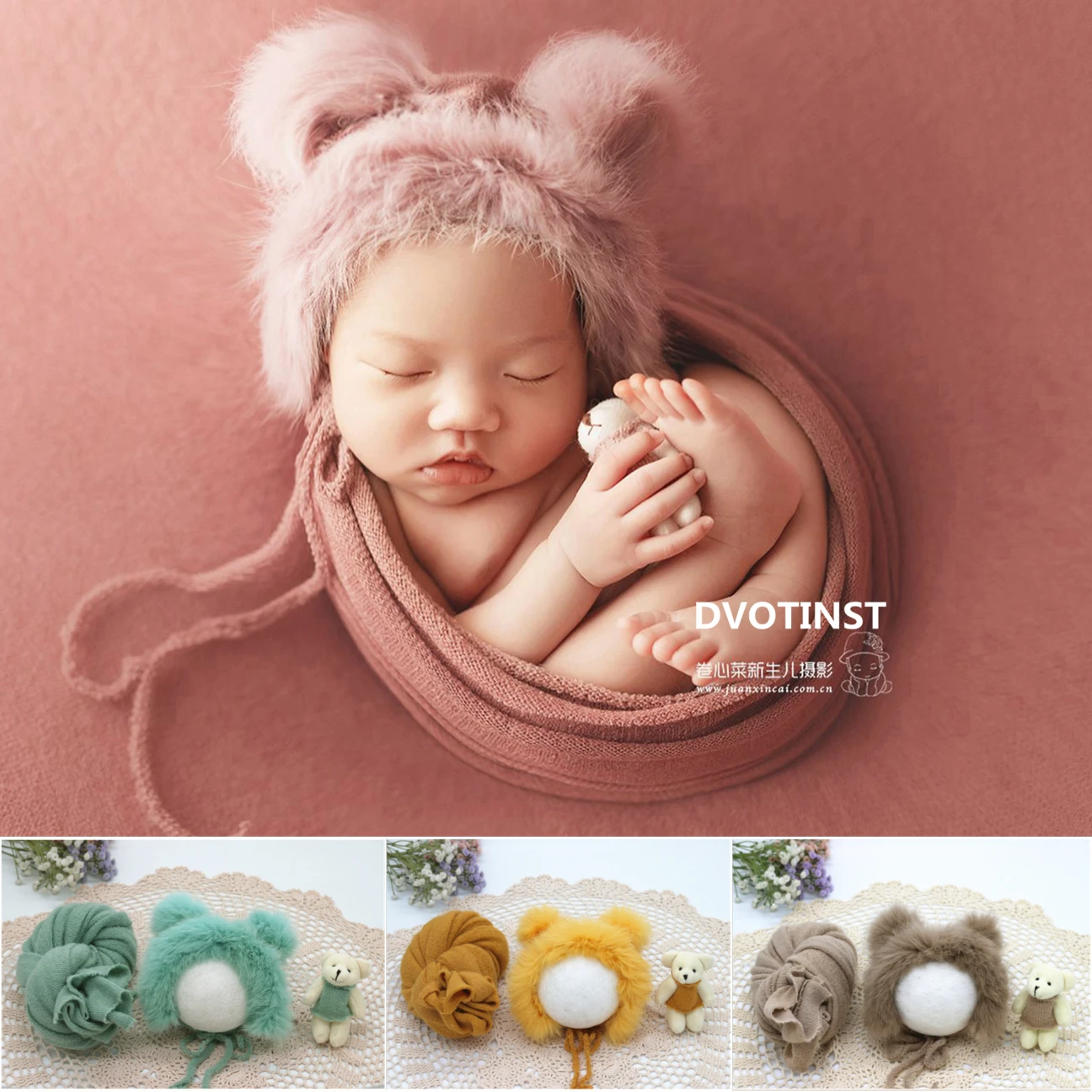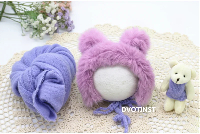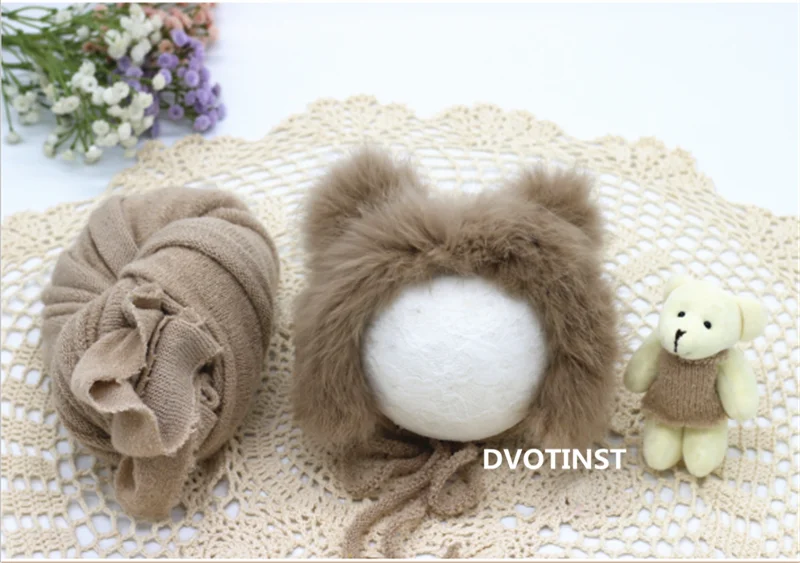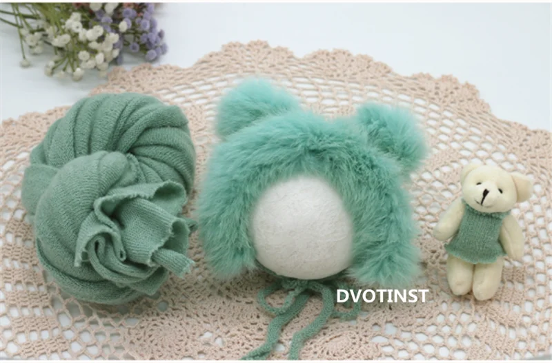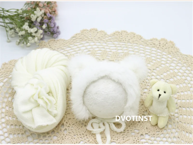Dvotinst Новорожденный ребенок Фотография реквизит Милая пушистая шапочка медведь кукла мягкая обертка 3 шт. набор Фотография Студия сессия фото реквизит