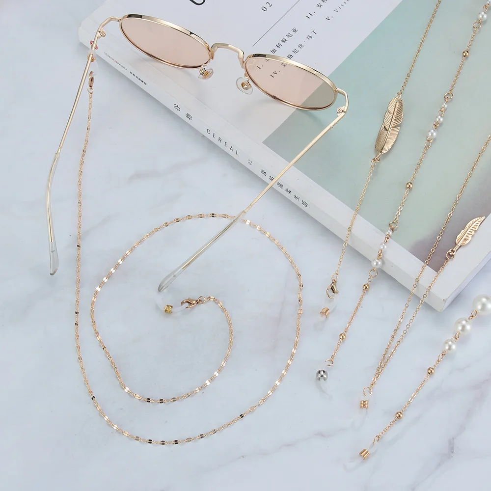 Модные очки, цепочки, жемчуг, металлические листья, Нескользящие солнцезащитные очки, держатель, ремешок, ожерелье для очков, женские очки, аксессуары