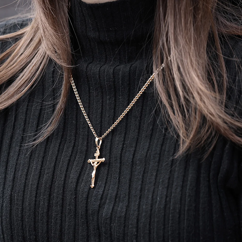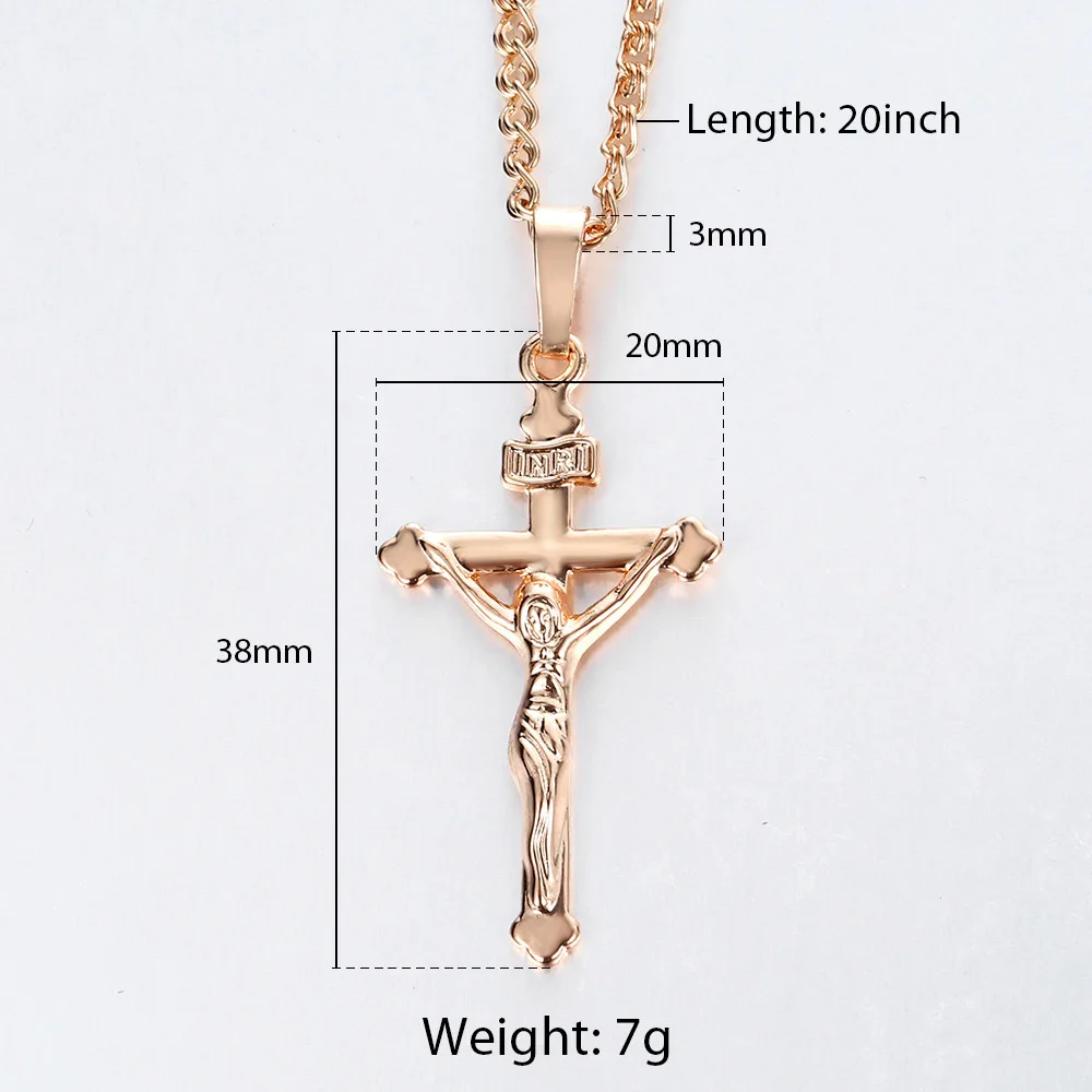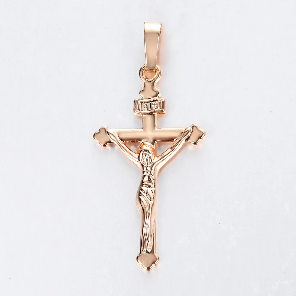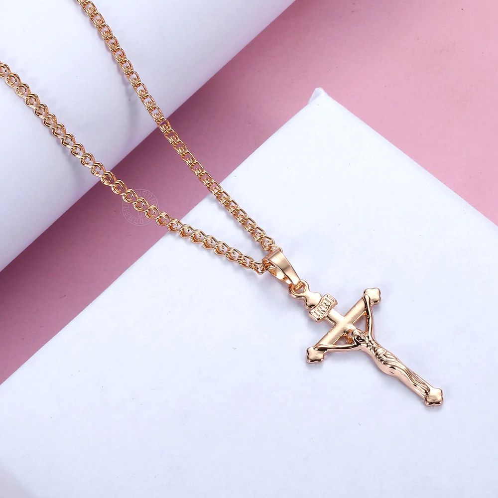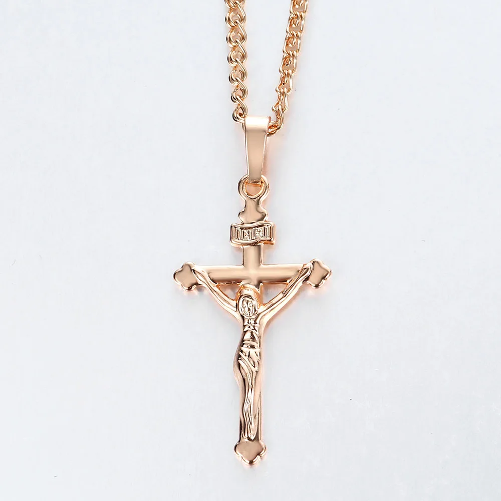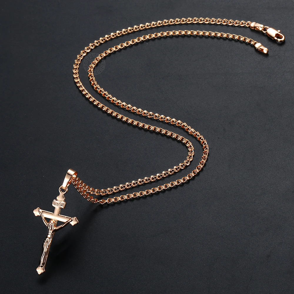 Ожерелье унисекс, розовое золото религиозная Подвеска "Иисус" пробы, с подвеской в виде креста, GP404, 585