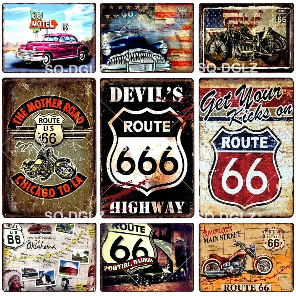 Маршрут 666 металлический знак доска Металл Винтаж пивной бар декор для гаражный знак пластина плакат искусство внутренний Декор настенная живопись Стикеры