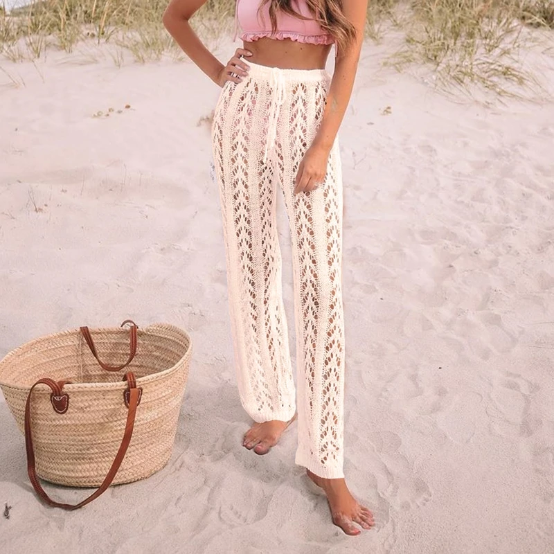 Хлопковая вязаная накидка для пляжа, накидка для купания, женские пляжные штаны, сетчатая накидка для купания, пляжная одежда, вязаный купальник