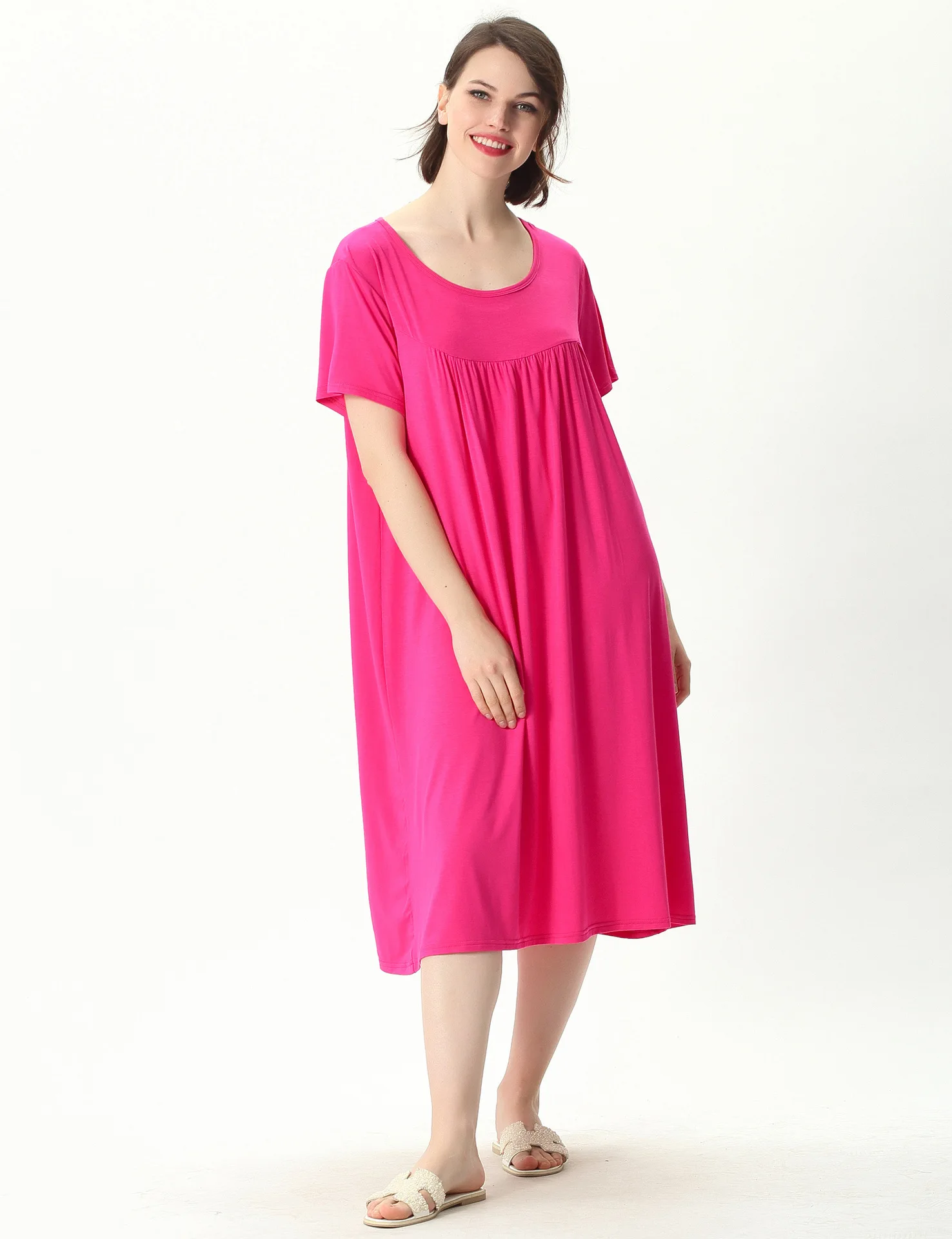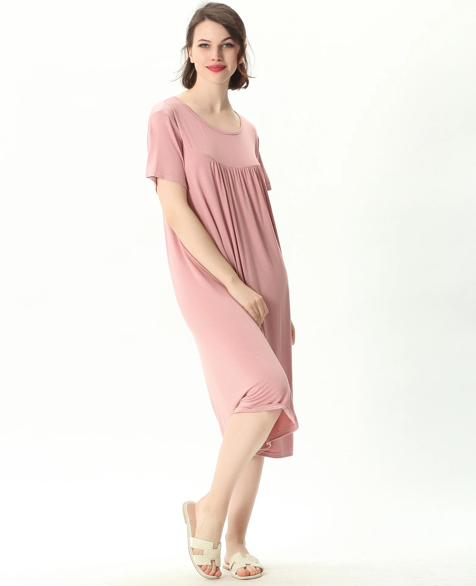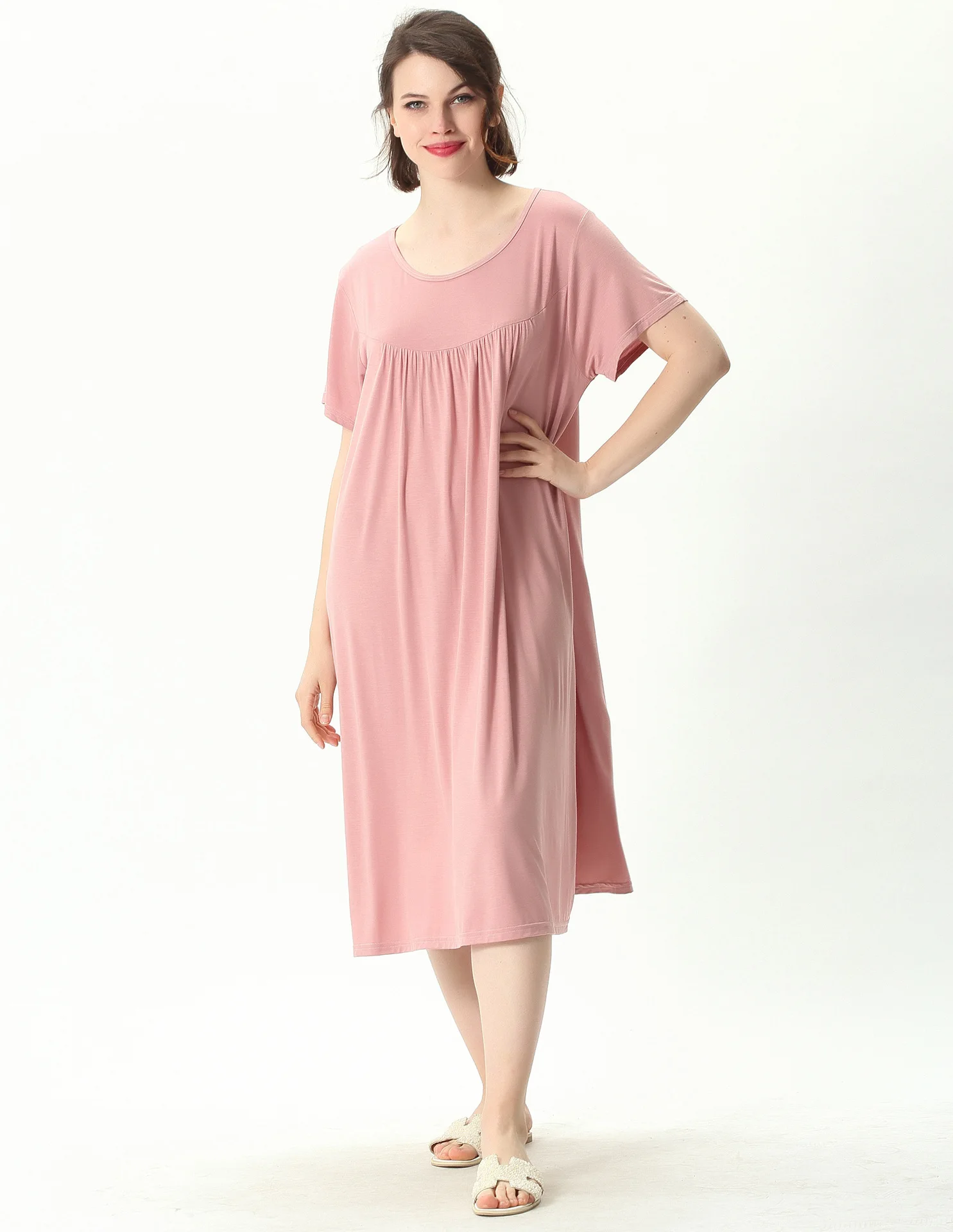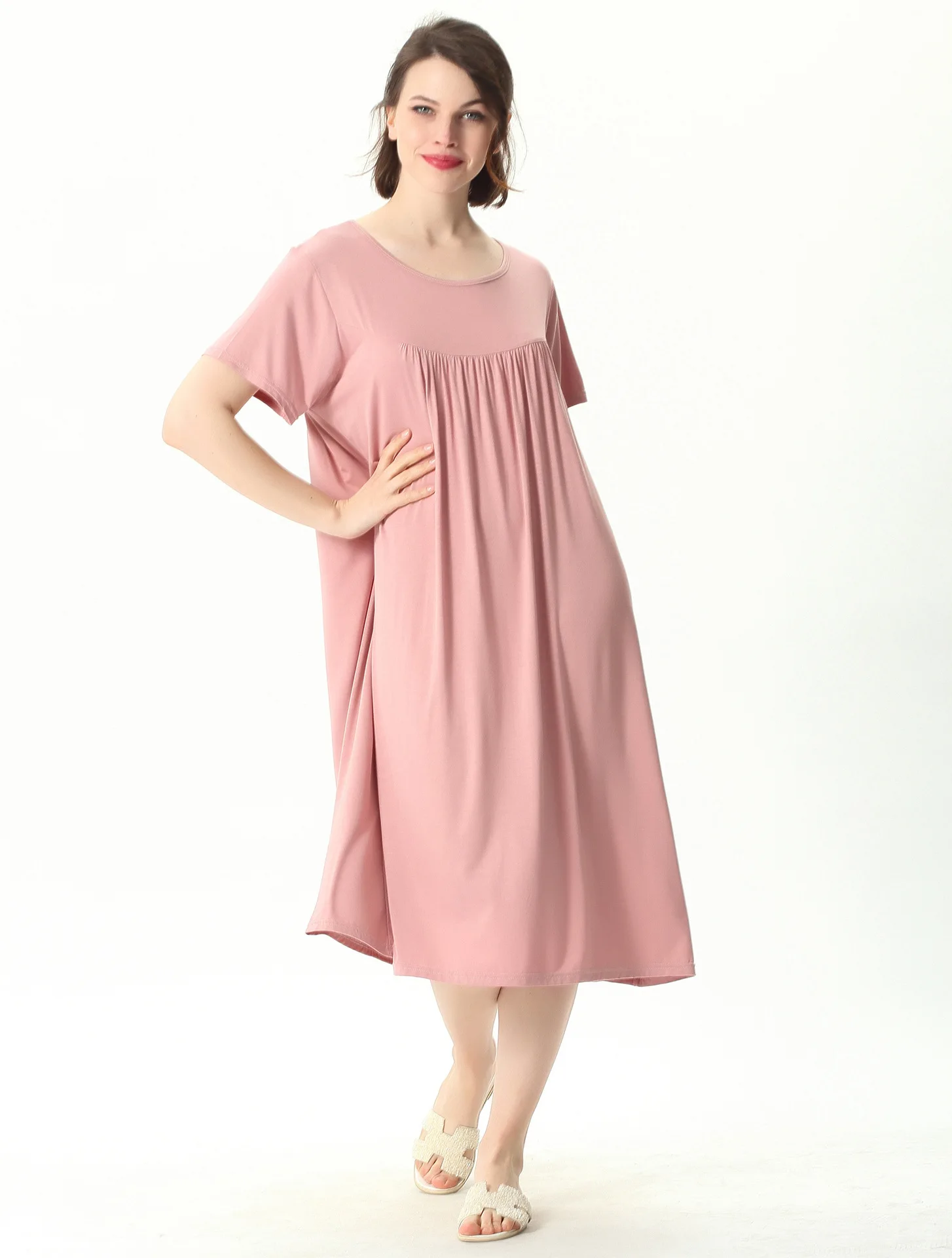 Женская ночная рубашка с коротким рукавом, свободного покроя