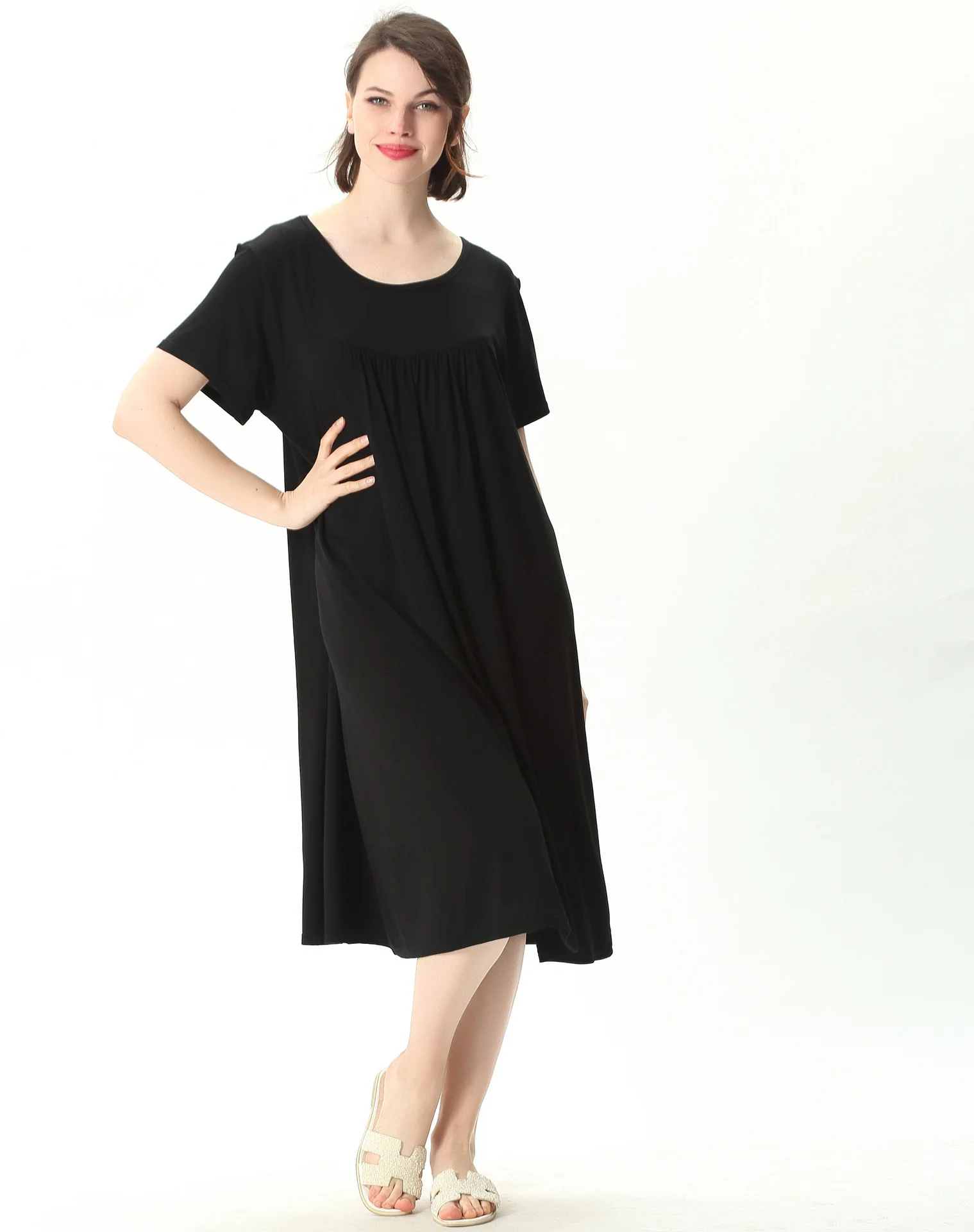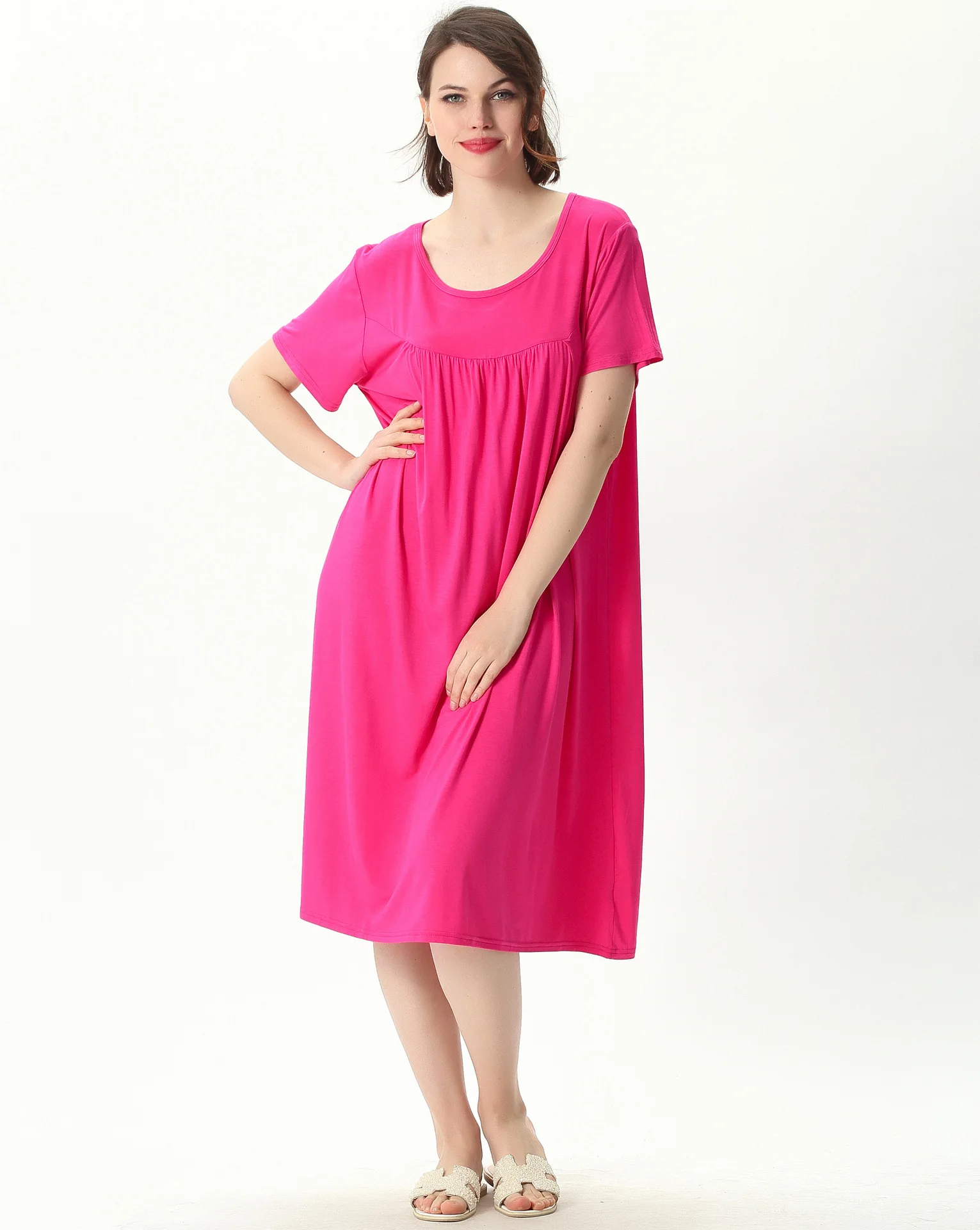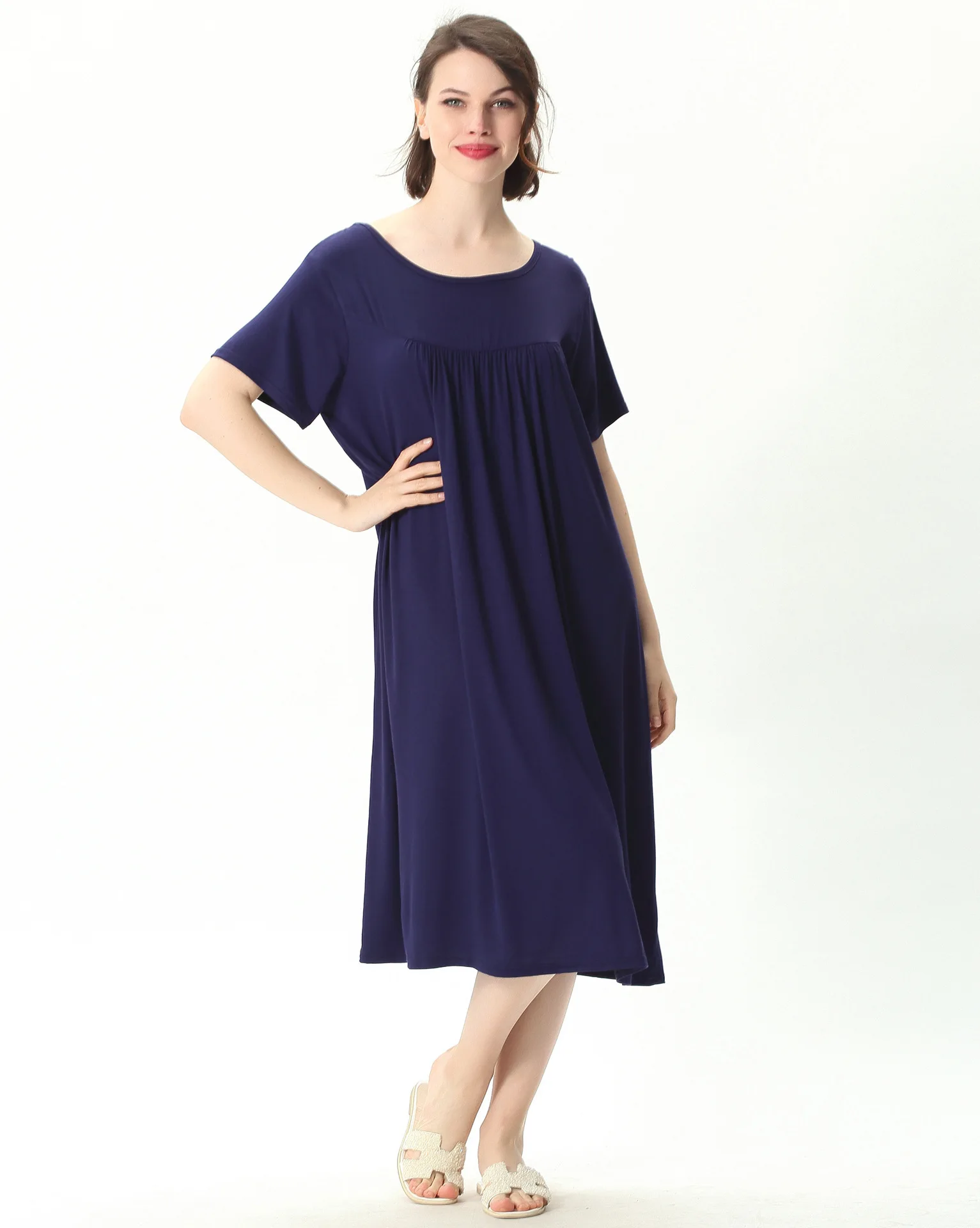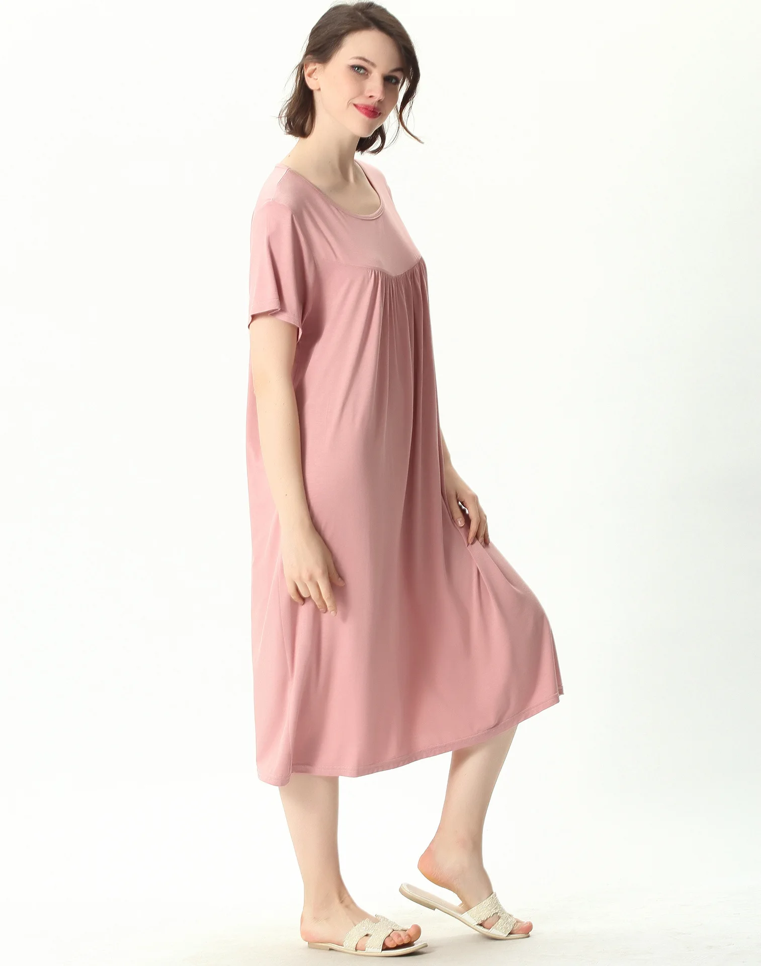 Женская ночная рубашка с коротким рукавом, свободного покроя