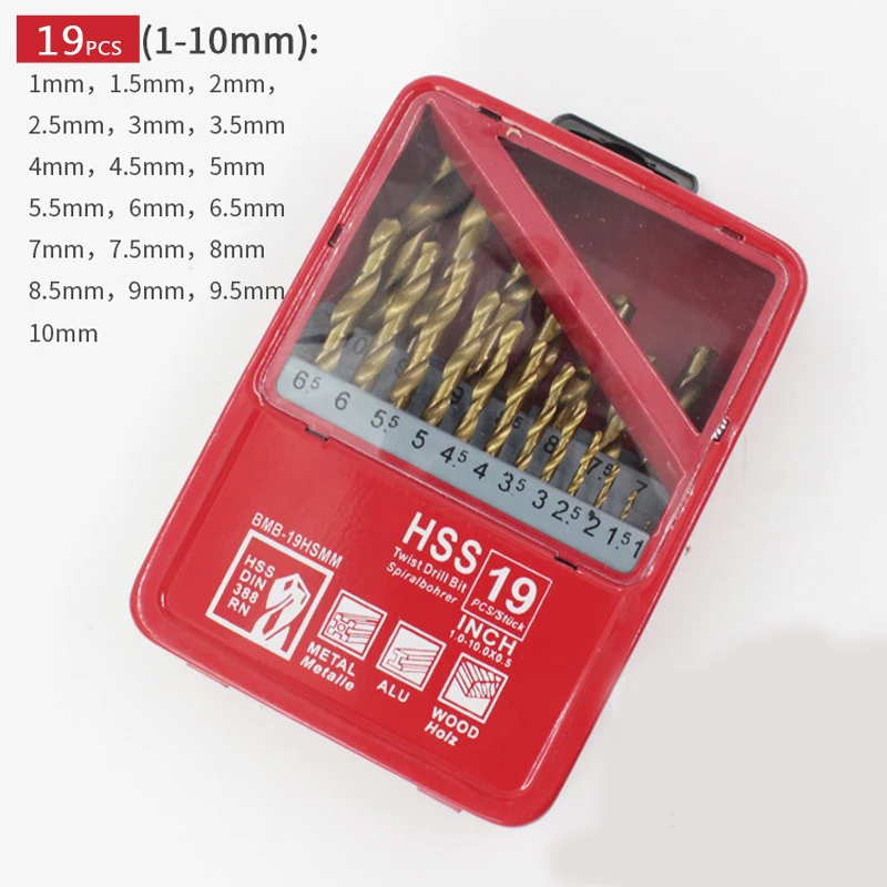 FINDER 13/19/25 шт. 1,0 ~ 13mm HSS набор сверл с титановым покрытием для металла, Деревообработка бурения аксессуары для электроинструментов в железной коробке