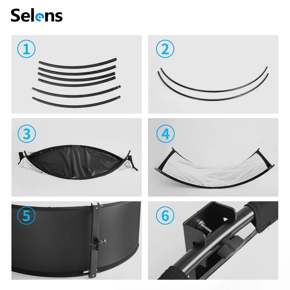Штатив Selens с U-образным рефлектором, 2 м, четырехцветный отражающий изогнутый рефлектор, портретный головной убор, серебристо-черный
