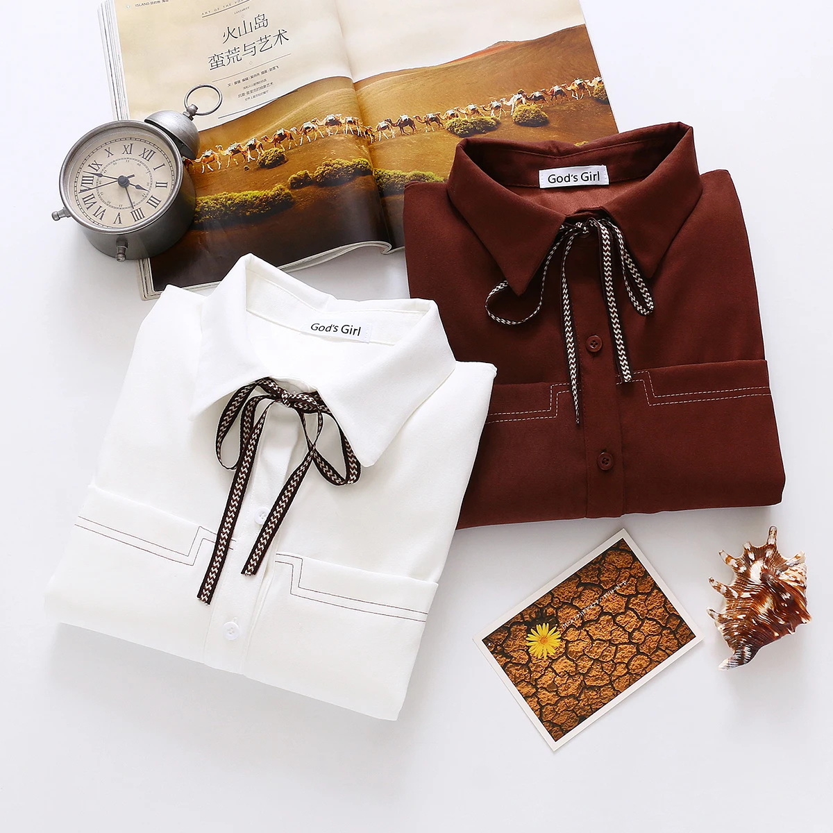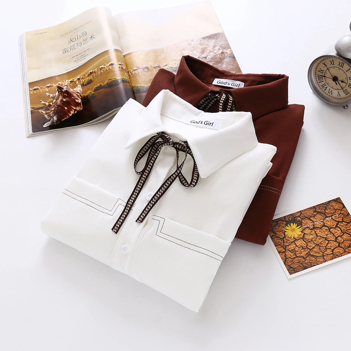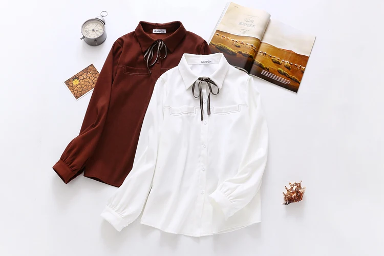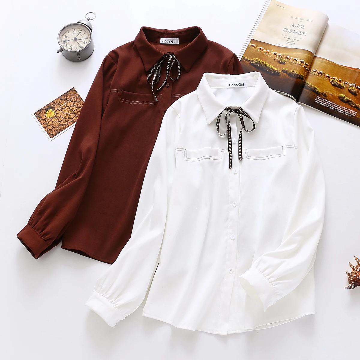 Женская офисная блузка Tonglord с длинным рукавом, женские рубашки, осень-весна 2020, приталенная блузка с бантом и отложным воротником, дикие женские топы в стиле ретро