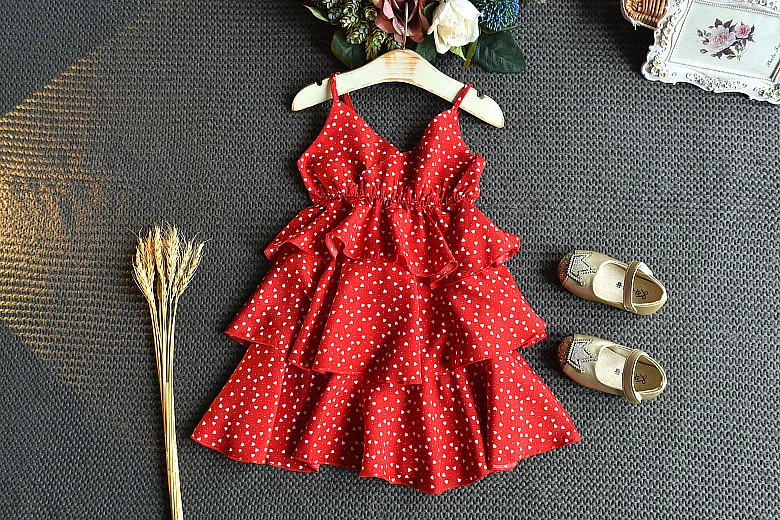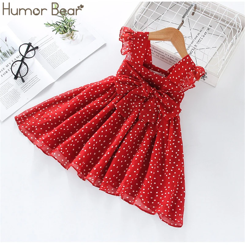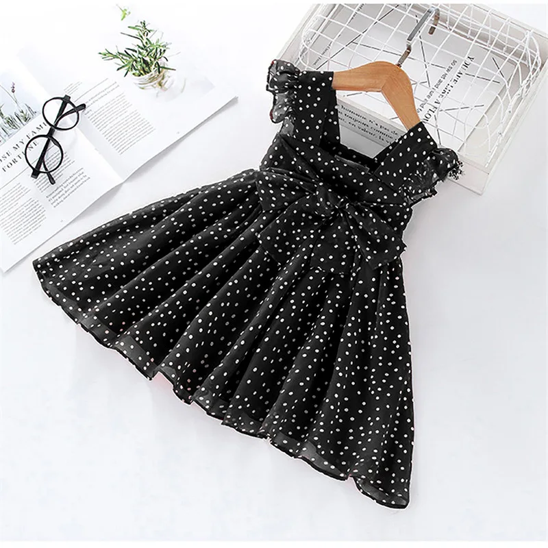 Летнее шифоновое платье для девочек, без рукавов, в горошек