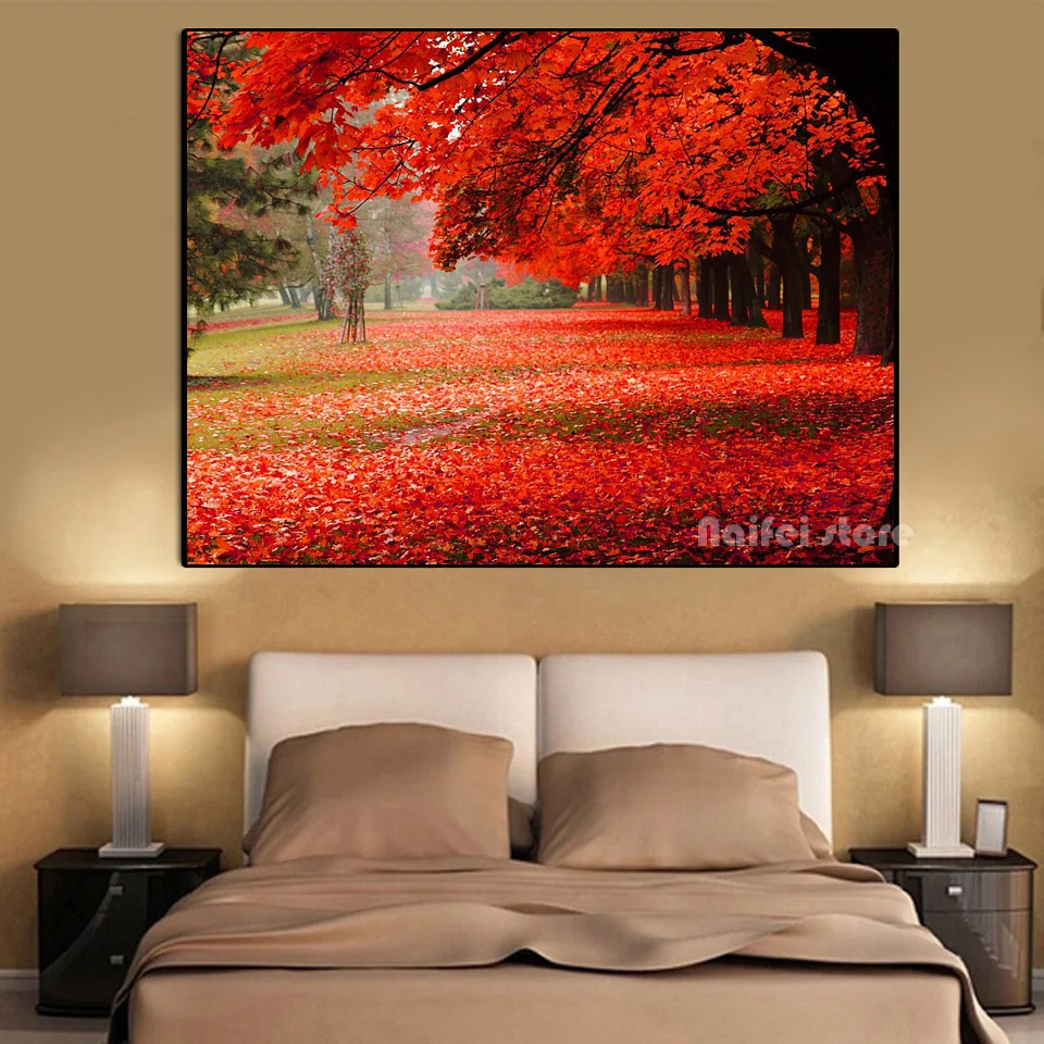 Алмазная 5D Вышивка сделай сам, картина из натуральных красных листьев, квадратнаяКруглая Мозаика, большие размеры, для осени