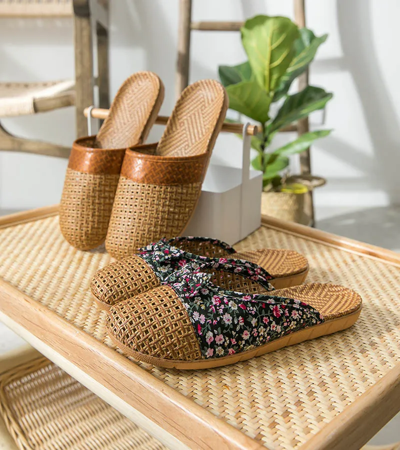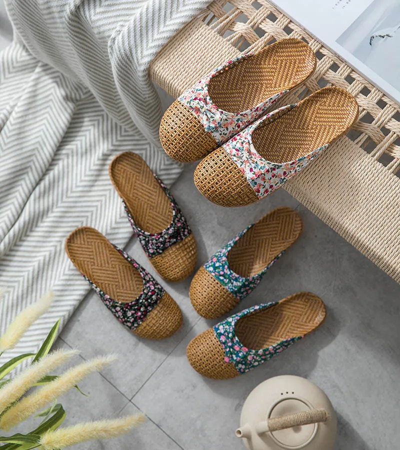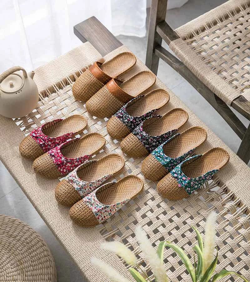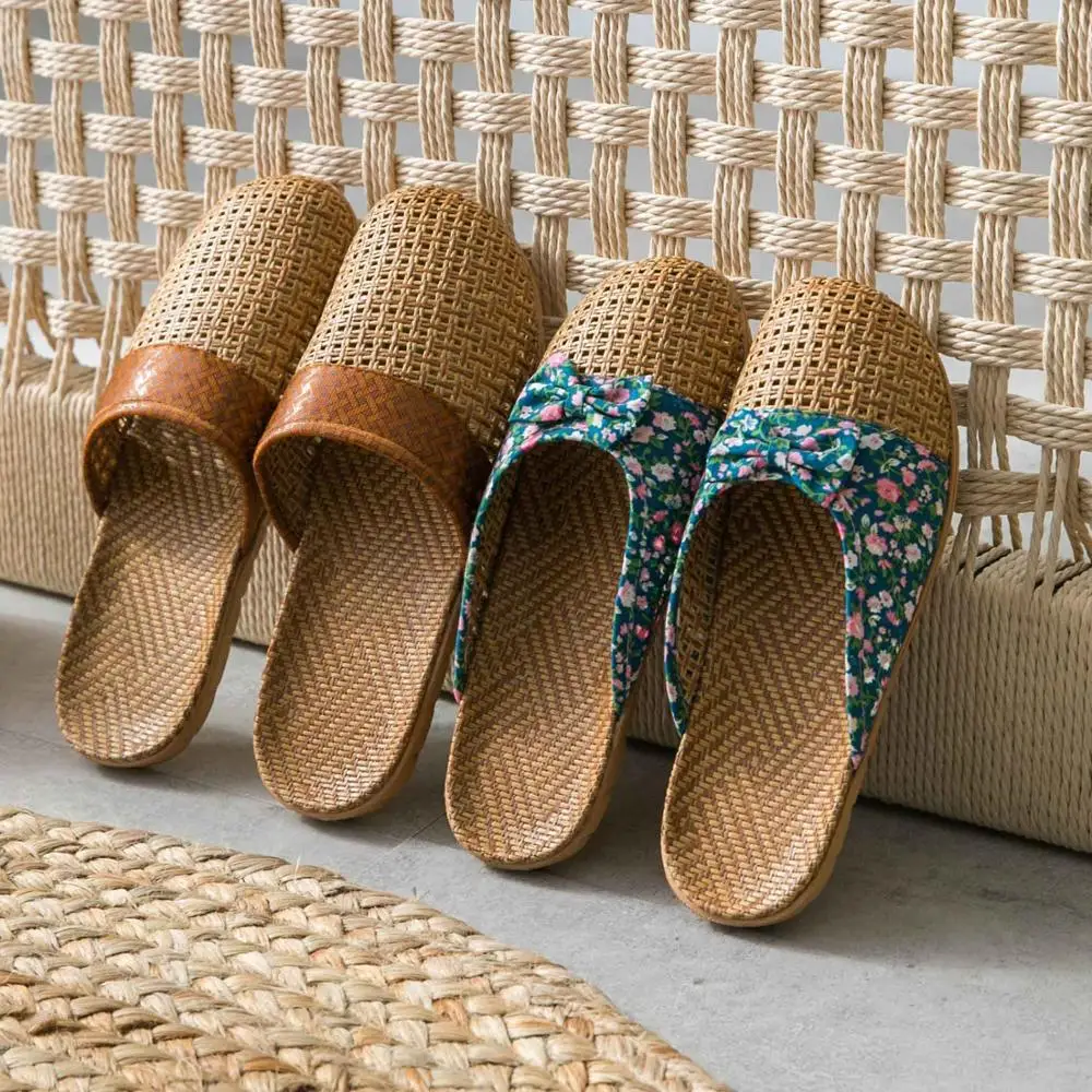 Льняные домашние тапочки для женщин, с цветочным бантом, летние, Нескользящие, для мужчин и женщин, Тапочки льняные