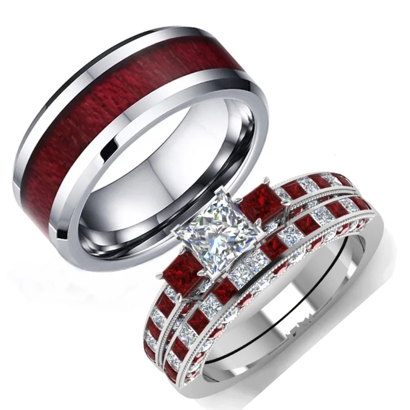 Набор колец из красного дерева с квадратным цирконием для мужчин и женщин, Модная бижутерия, обручальное кольцо с геометрическим дизайном, хороший подарок для любимой