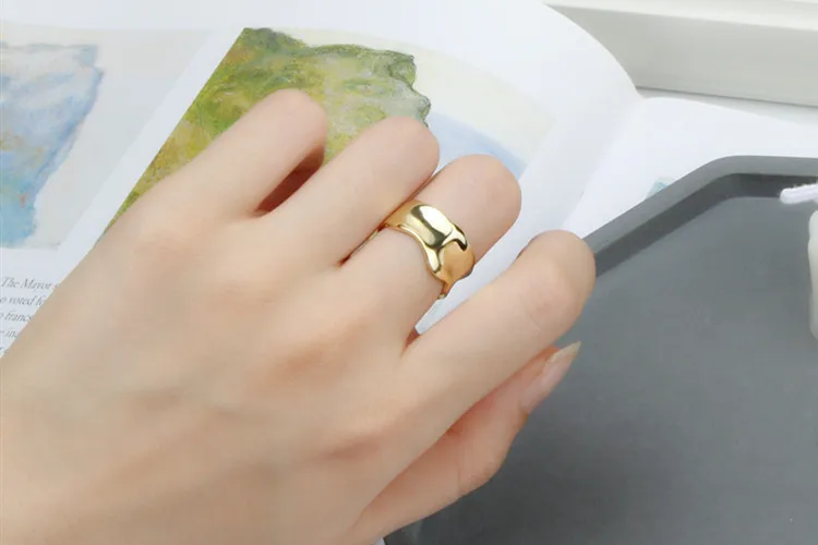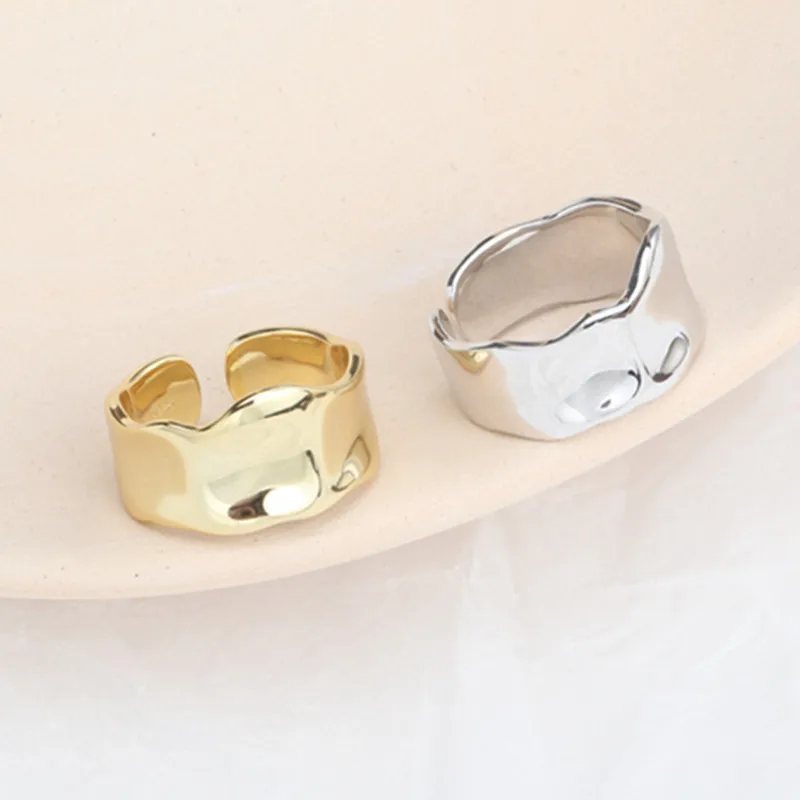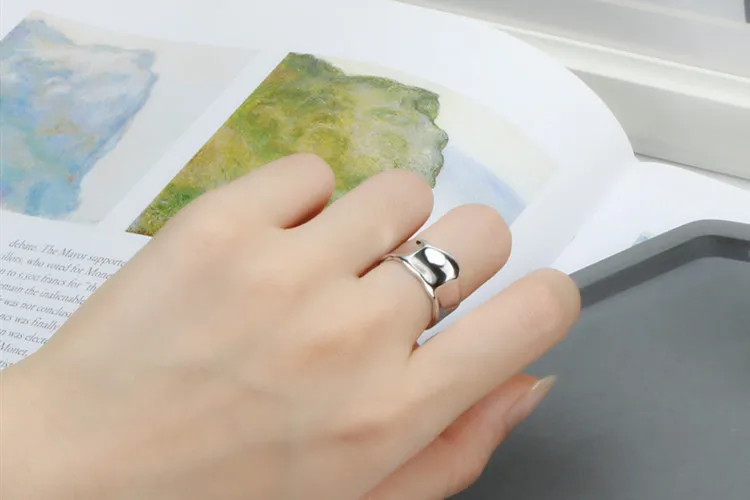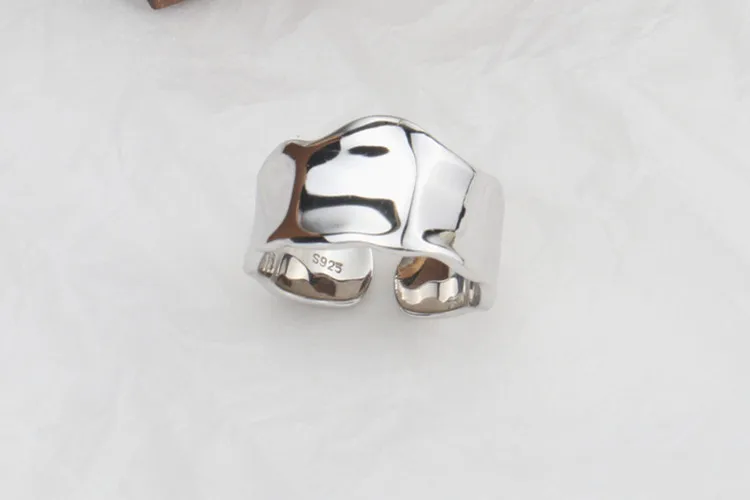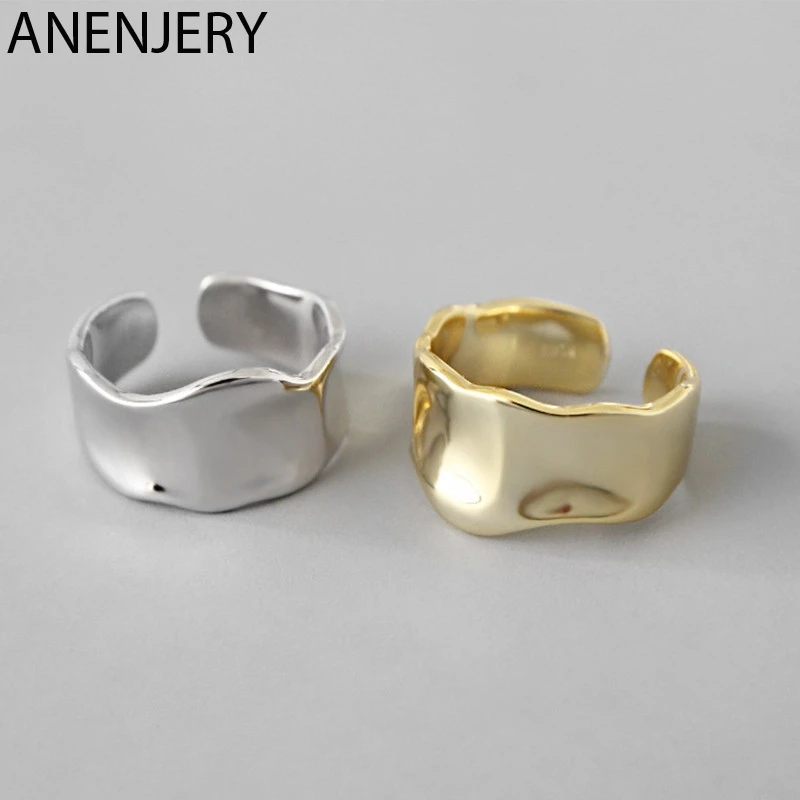 Женское кольцо с широким отверстием ANENJERY, 925 пробы серебристый неправильной формы, Геометрическая вогнутая выпуклая волна, S-R578