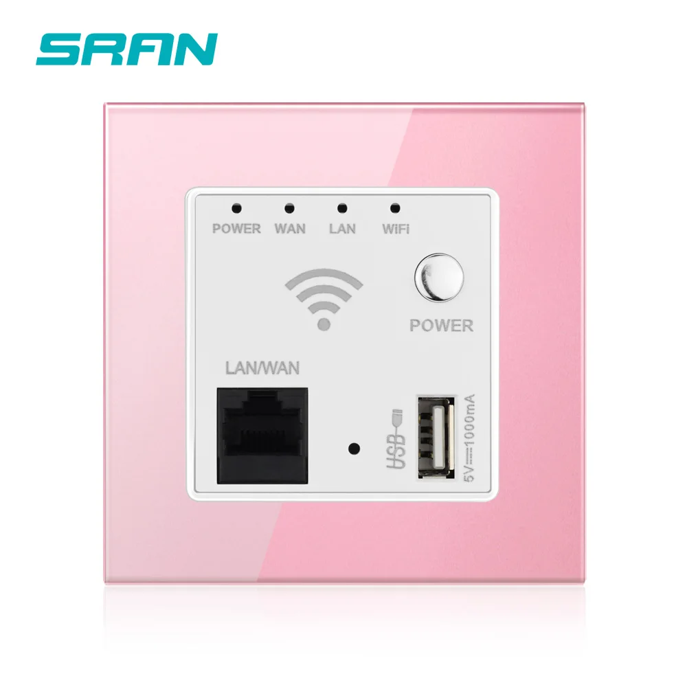 Настенная Wi-Fi-розетка SRAN с панелью из закаленного стекла с USB, 86 мм х 86 мм, 300 МБ, беспроводная релейная розетка