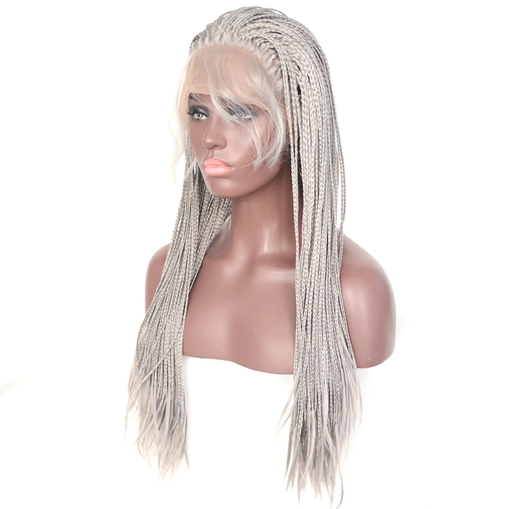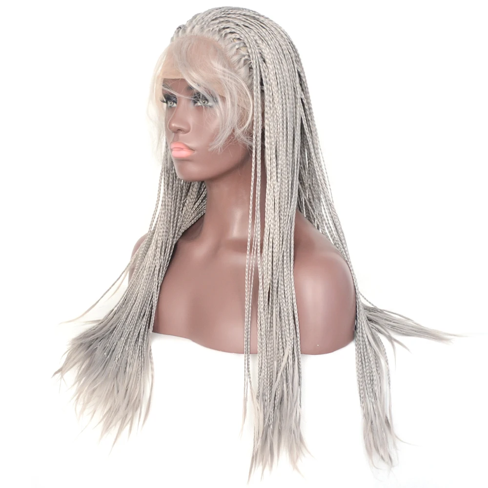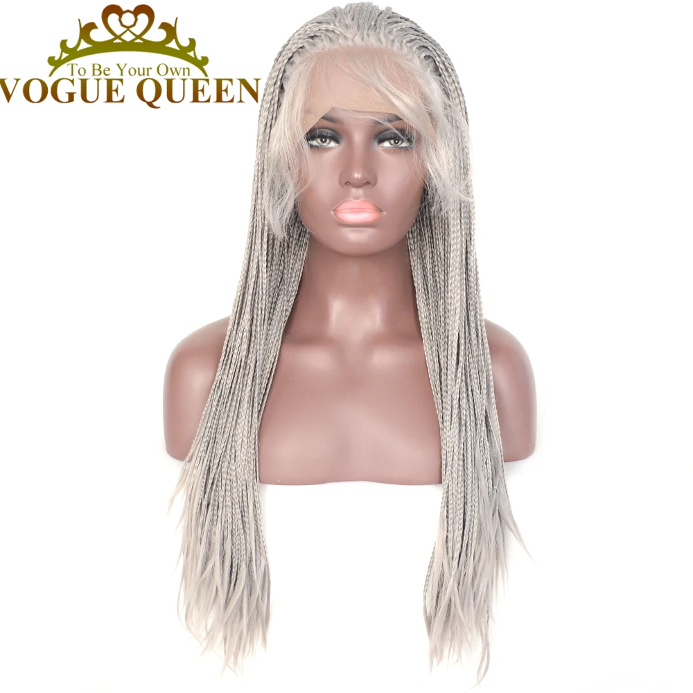 Vogue Queen серый плетеный синтетический кружевной передний парик Термостойкое волокно 24 дюйма для женщин