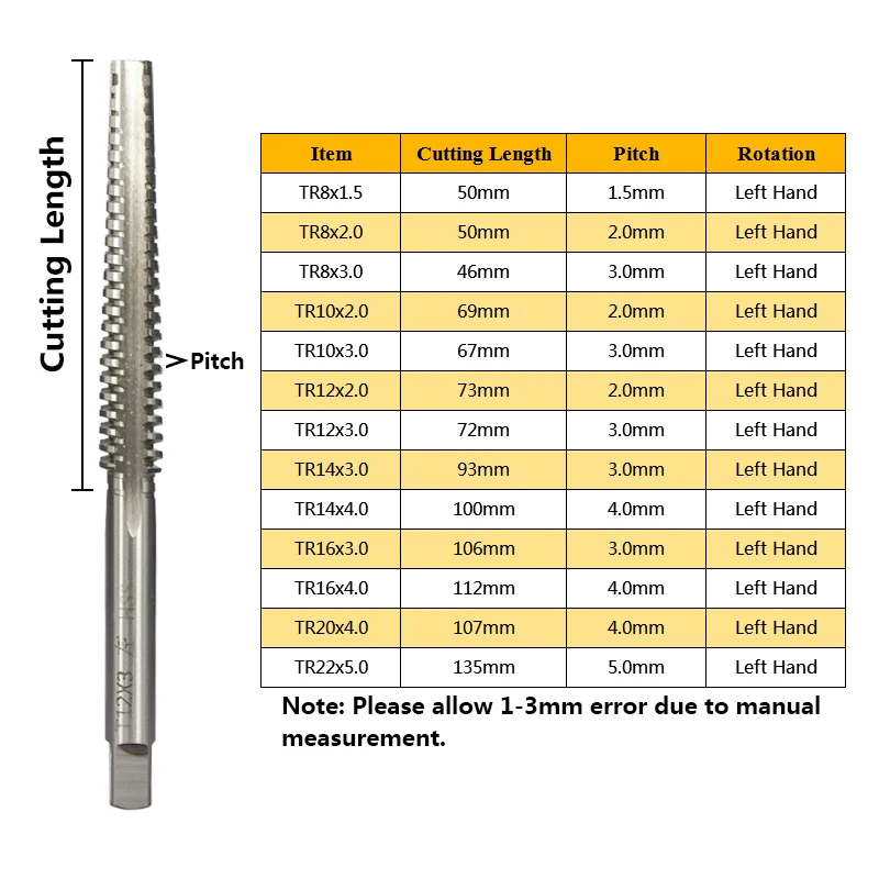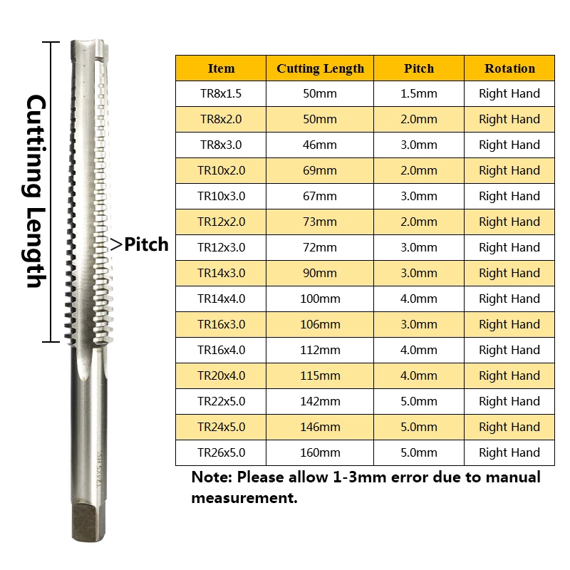 Метчик с трапециевидной резьбой для металла, 1 шт., TR8-TR26