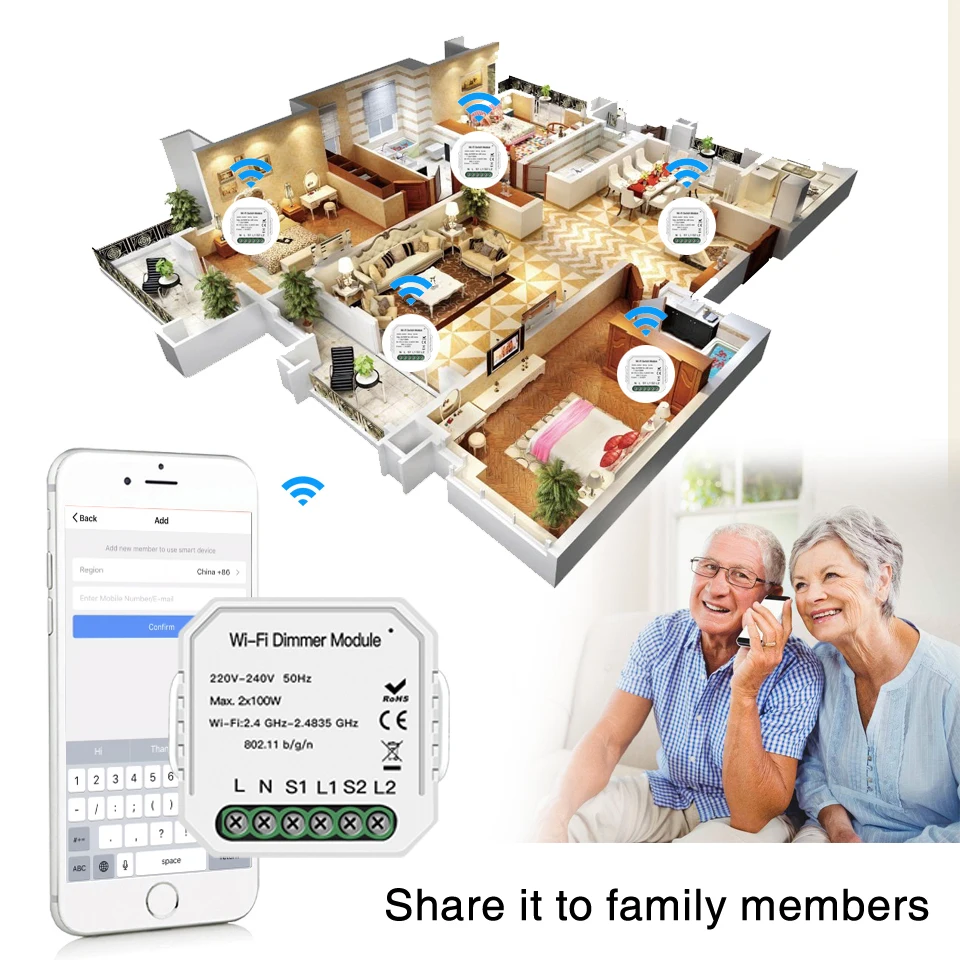 3.Wi-Fi управление через ваш мобильный телефон 2,4G сетей обеспечивает необходимое подключение к модулю диммера DIY без необходимости отдельного концентратора.