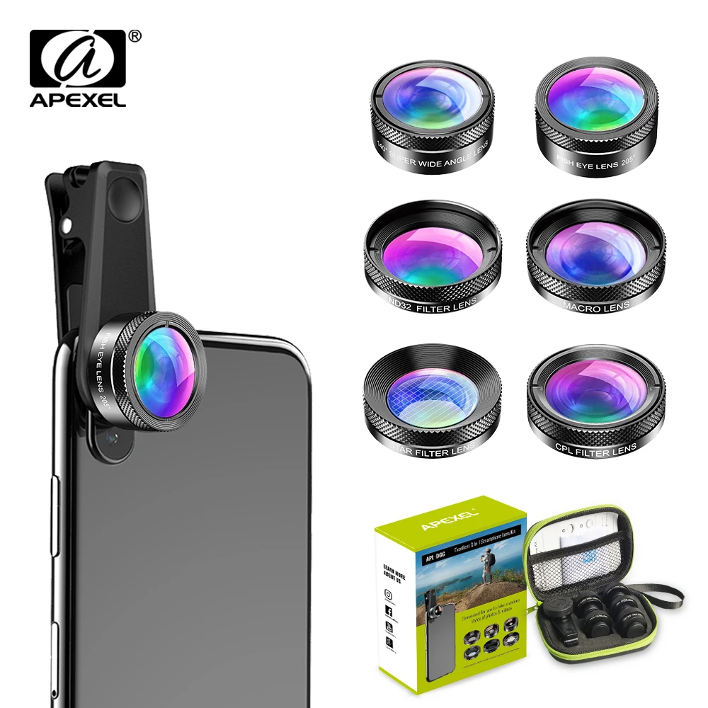 Мобильный телефон APEXEL 6 в 1, объектив камеры, Широкоугольный макро-объектив, объектив рыбий глаз, фильтр CPLStar ND32 для смартфонов iPhone huaweall