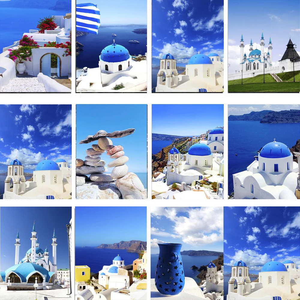5D алмазная живопись с изображением средиземноморского пейзажа, полноразмерная картина сделай сам для побережья, строительства, городского пейзажа, домашний декор, подарок FG1813