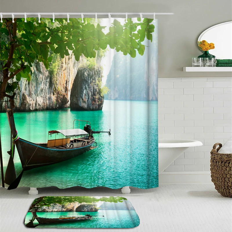 Красивые горные и морские пейзажи, 3D занавески для душа, набор из ...