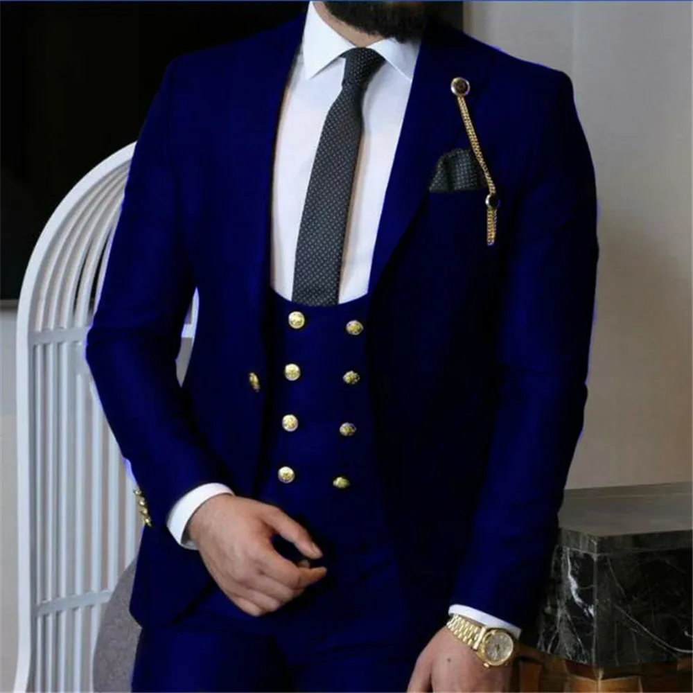 Смокинг для жениха C848 мужской, пиковая куртка, брюки, жилет и галстук, пиковые лацканы, Свадебный костюм, 3 предмета, ЧерныйТемно-КрасныйКоролевский синий
