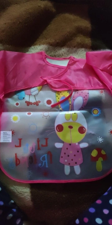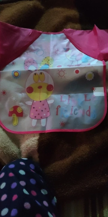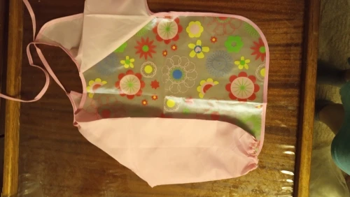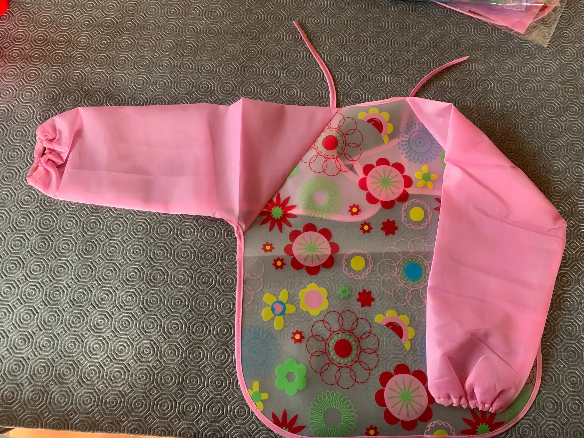 Это мой косяк, но я не думала, что фартук настолько большой, на ребёнка возрастом от 3х лет, как минимум, а то и больше. Прям большая, короче. Нам 9 месяцев и она нам просто капец как велика