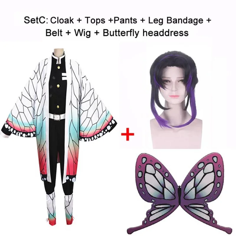 Костюм-кимоно из аниме рассекающий демонов, парик с бабочкой для косплея, 7 шт.компл.