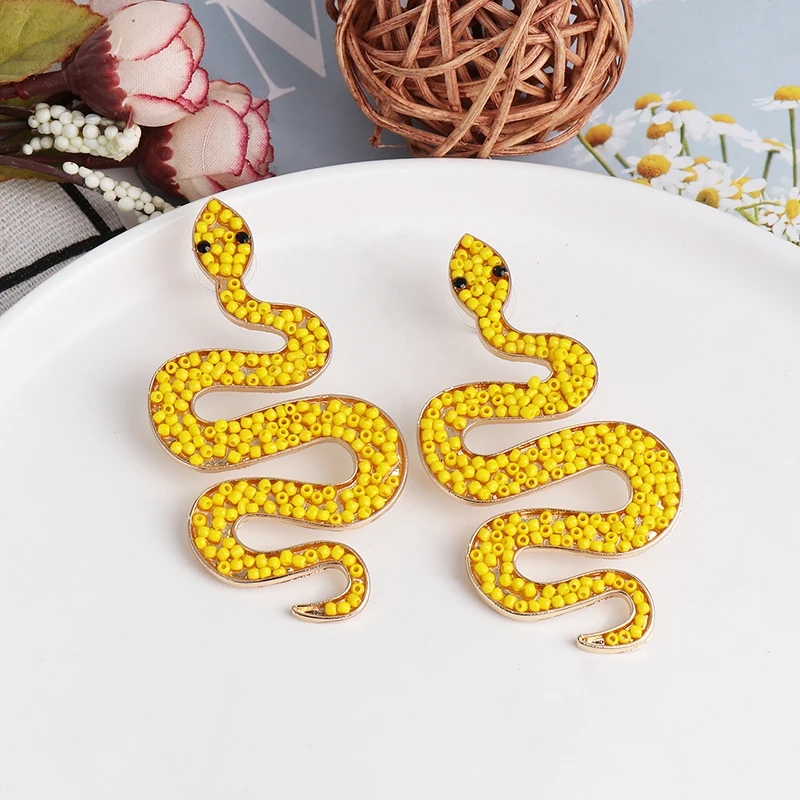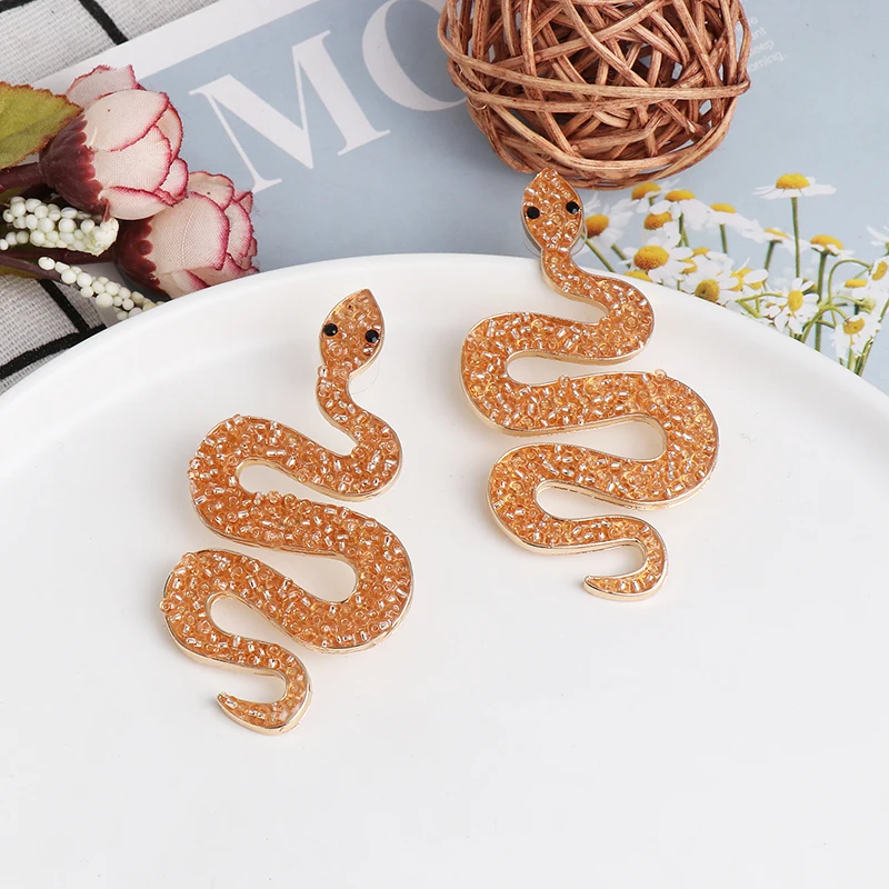 Винтажные длинные серьги JURAN в форме змеи из полимерных бусин для женщин, ювелирные изделия, европейские женские металлические массивные Висячие серьги, подарки для девушек
