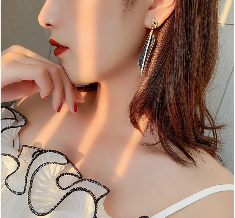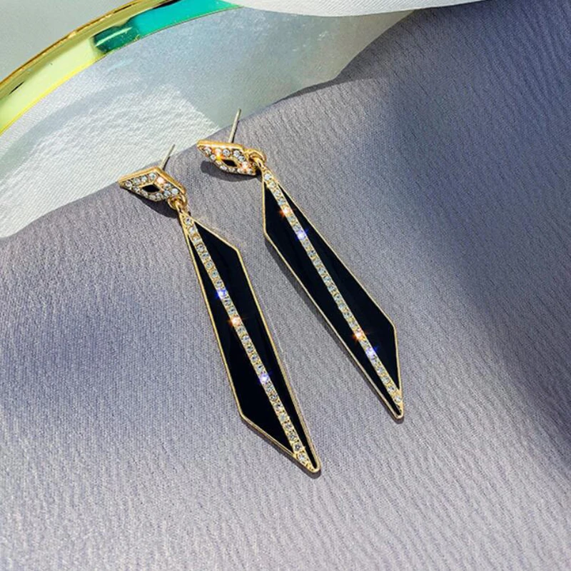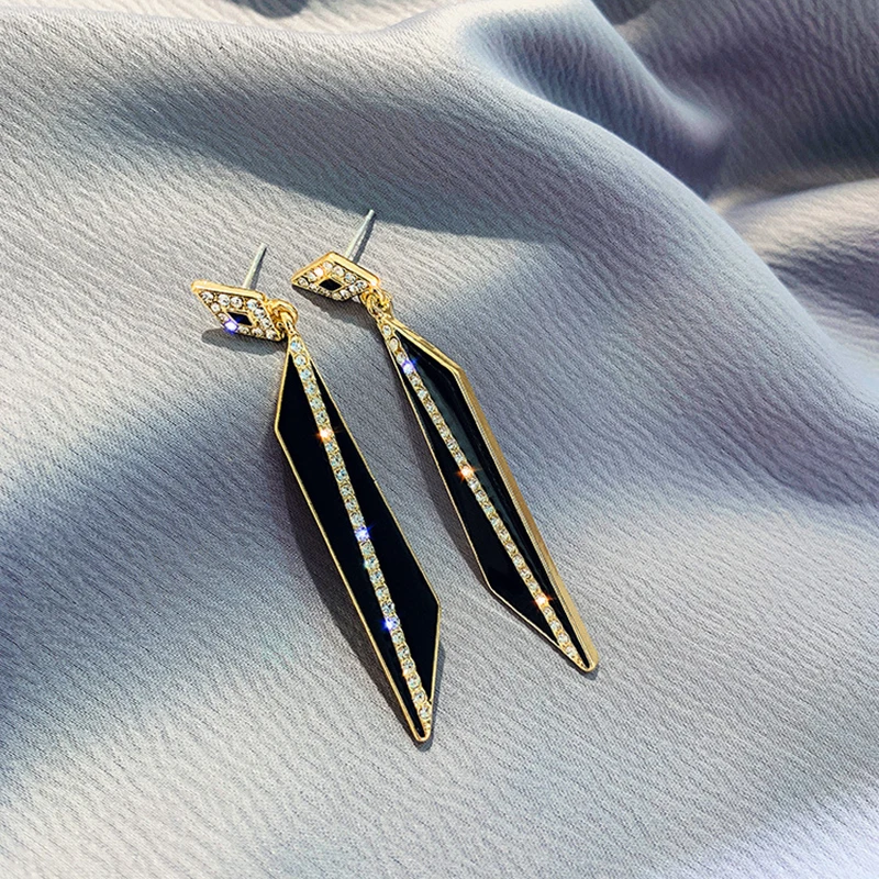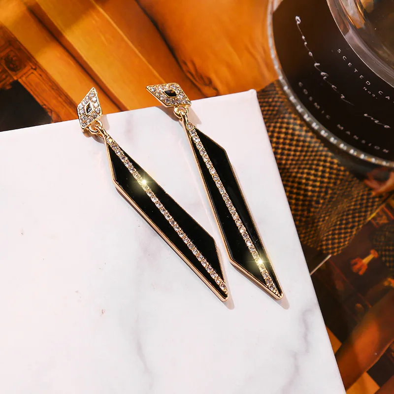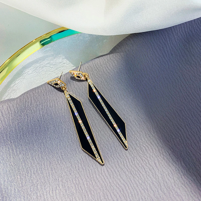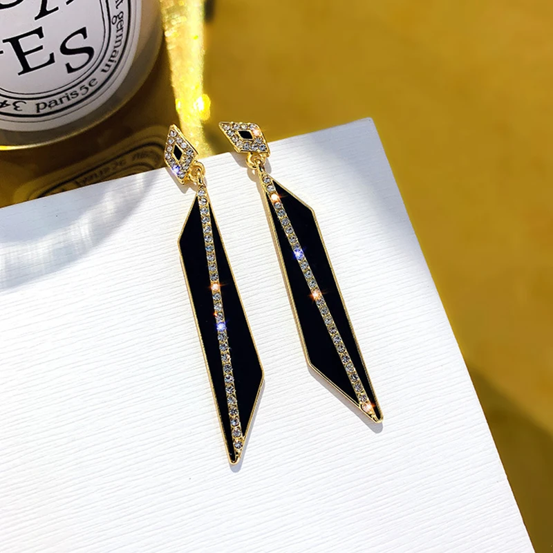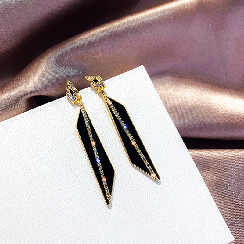 Женские серьги-подвески с кристаллами, висячие серьги геометрической формы с черным кристаллом Вечерние
